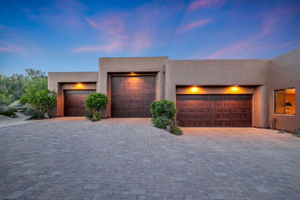 Discover a refined outdoor space with new contemporary garage doors, a newly