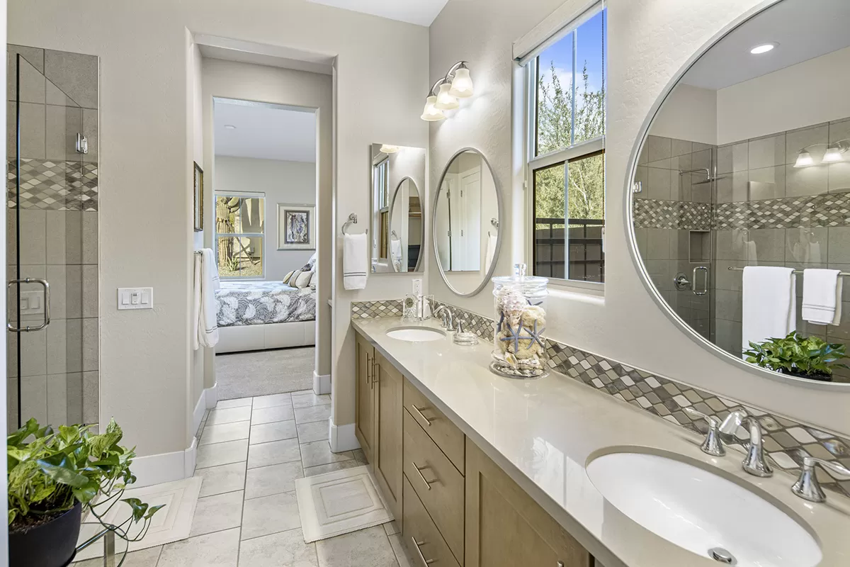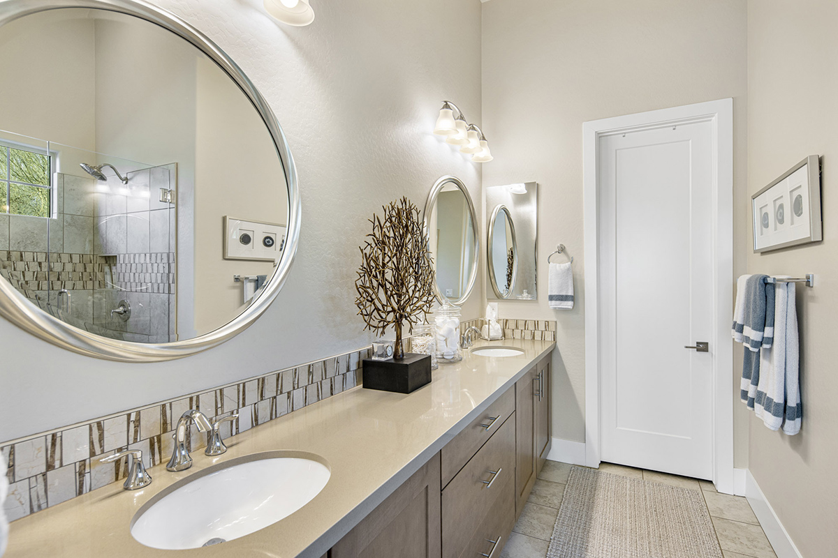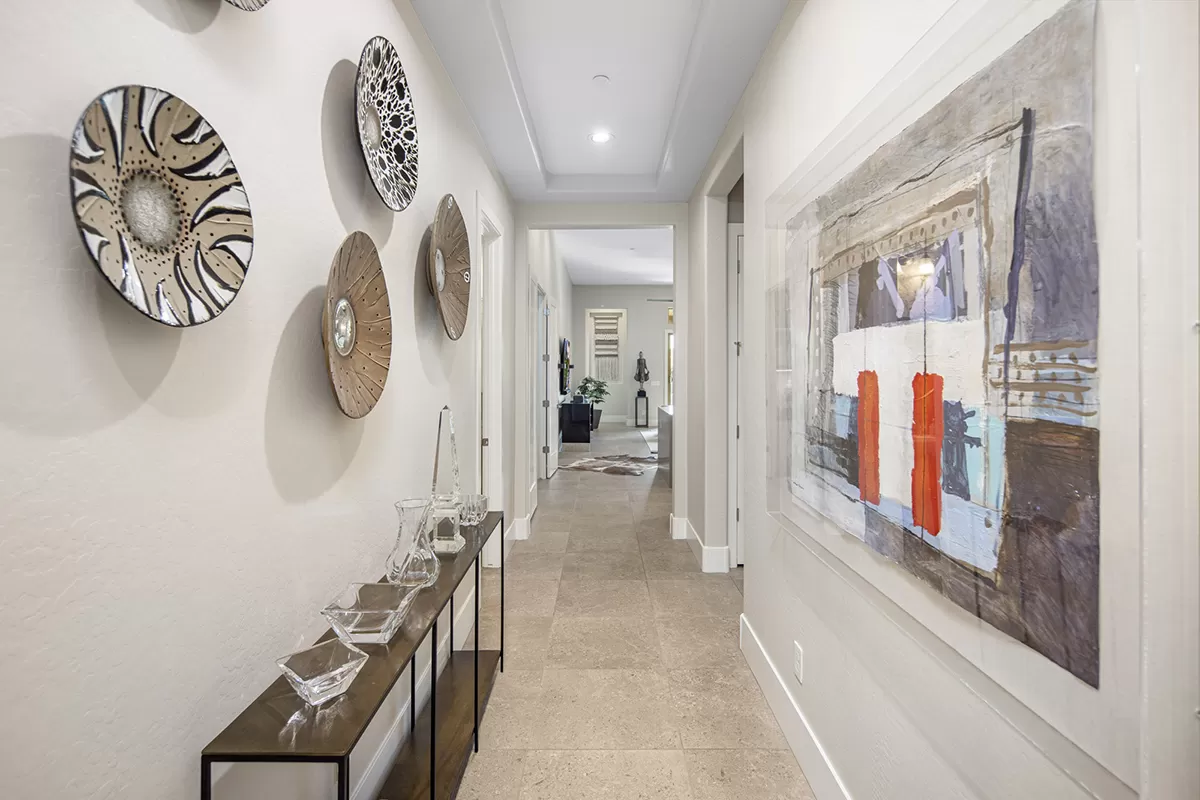 The spacious, open floor plan features stunning finishes and upgrades and creates a welcoming flow. This home boasts custom closets, plantation shutters, designer light fixtures and mirrors, high ceilings, a Crystal Tech water filtration system, a tankless hot water heater, and so much more.