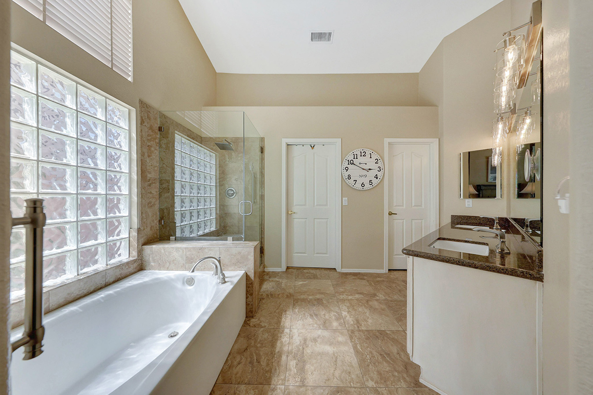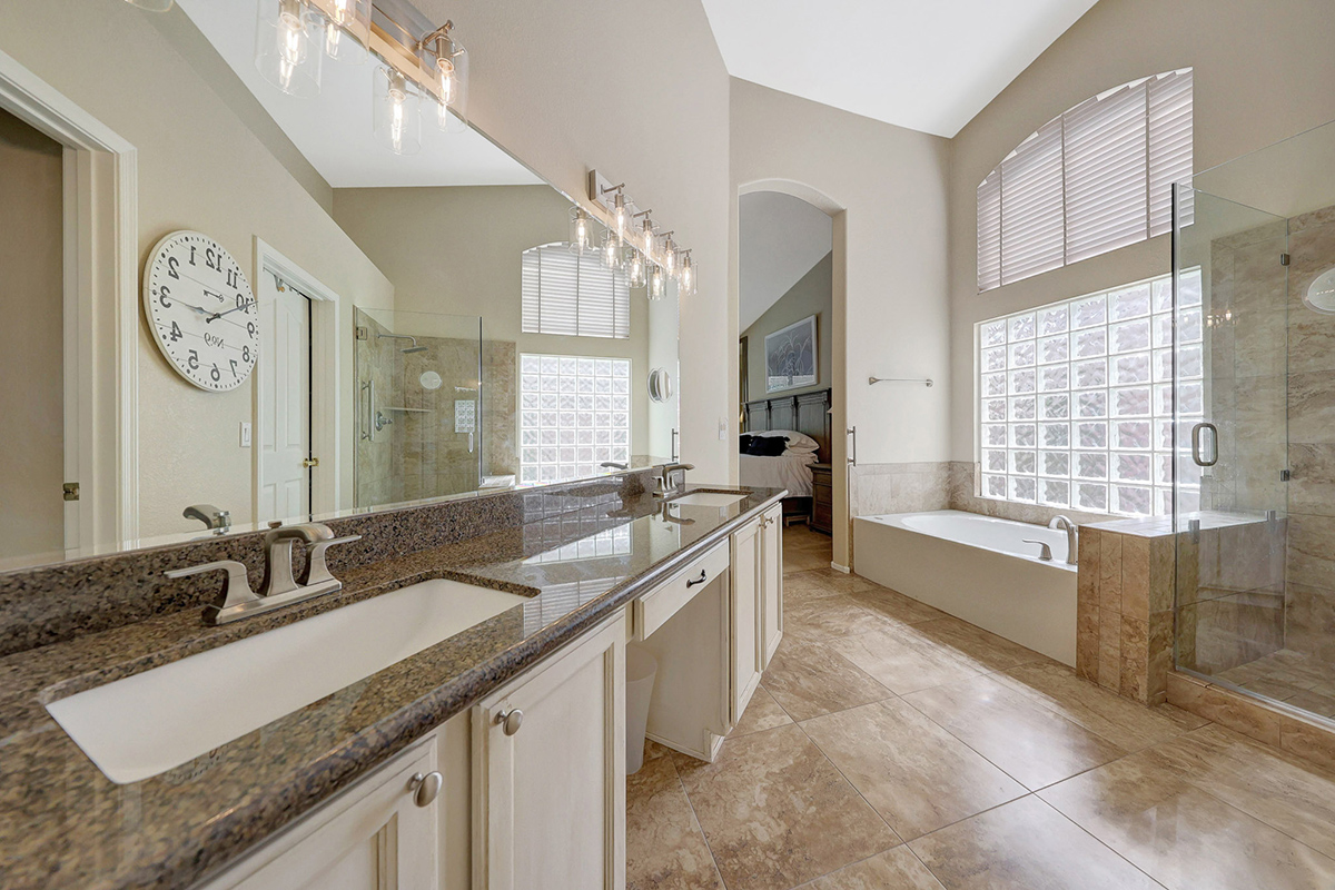 Nestled in the highly desirable Tatum Highlands community, this exceptional 3-bedroom, 2-bathroom home offers a perfect balance of comfort, functionality, and resort-style living. The split floor plan ensures privacy, with the primary suite set apart. This serene primary suite features a bay of windows overlooking the backyard, a spacious bathroom with dual vanities, a separate shower and tub, and an oversized walk-in closet. Two additional guest suites are tucked away down a private hallway, sharing a well-appointed hall bath.