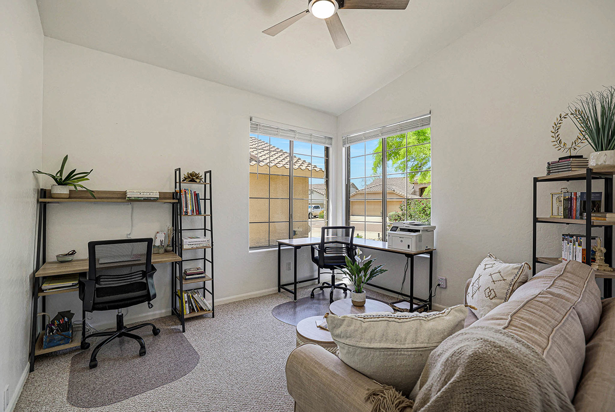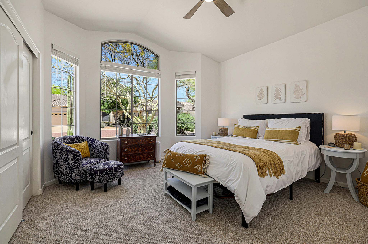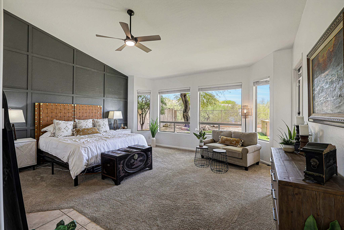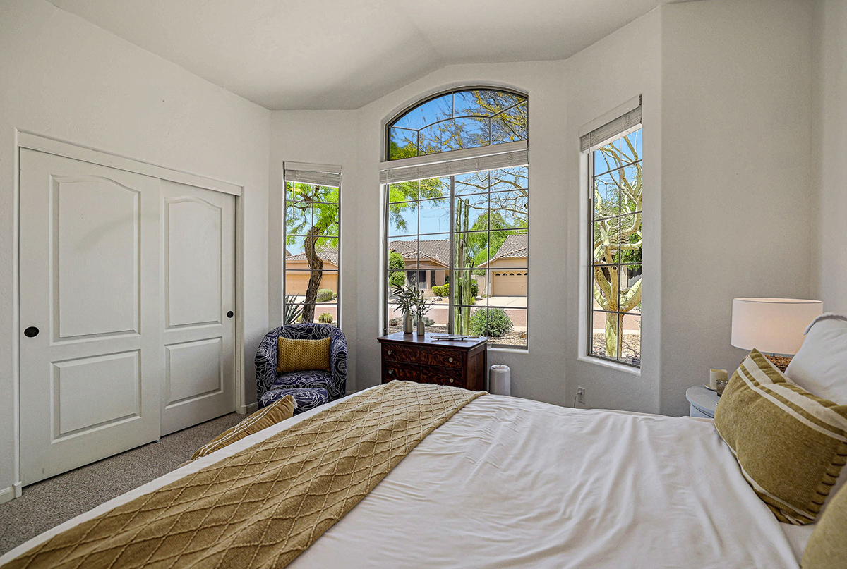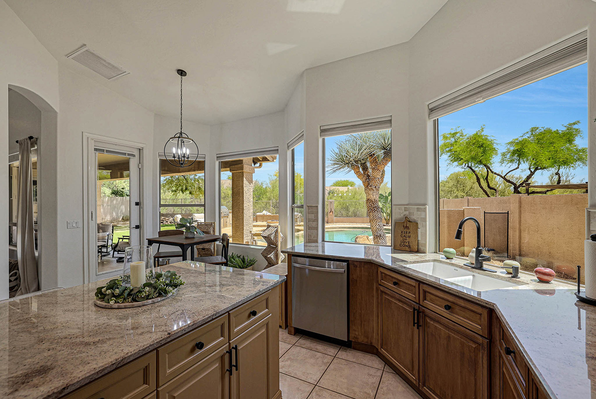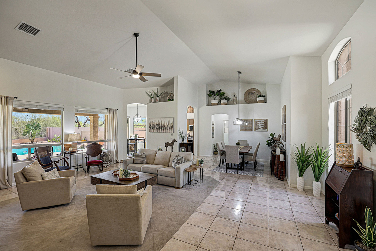 Other highlights include window treatments, an irrigation drip system in the front yard, window sunscreens (stored in the garage), and a spacious three-car garage. Welcome home to comfort, style, and relaxation at Tatum Ranch.