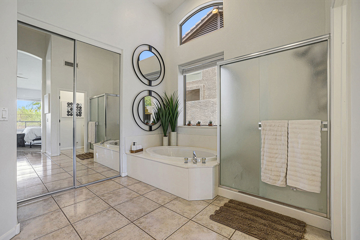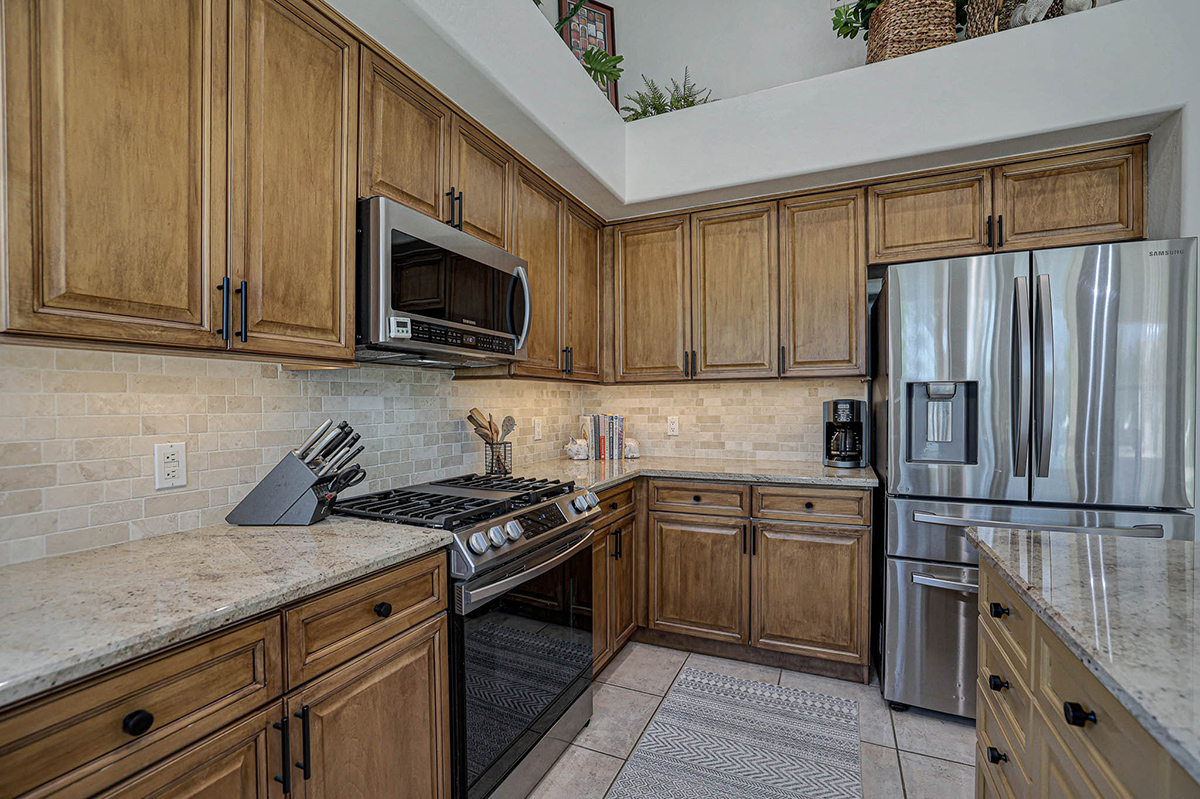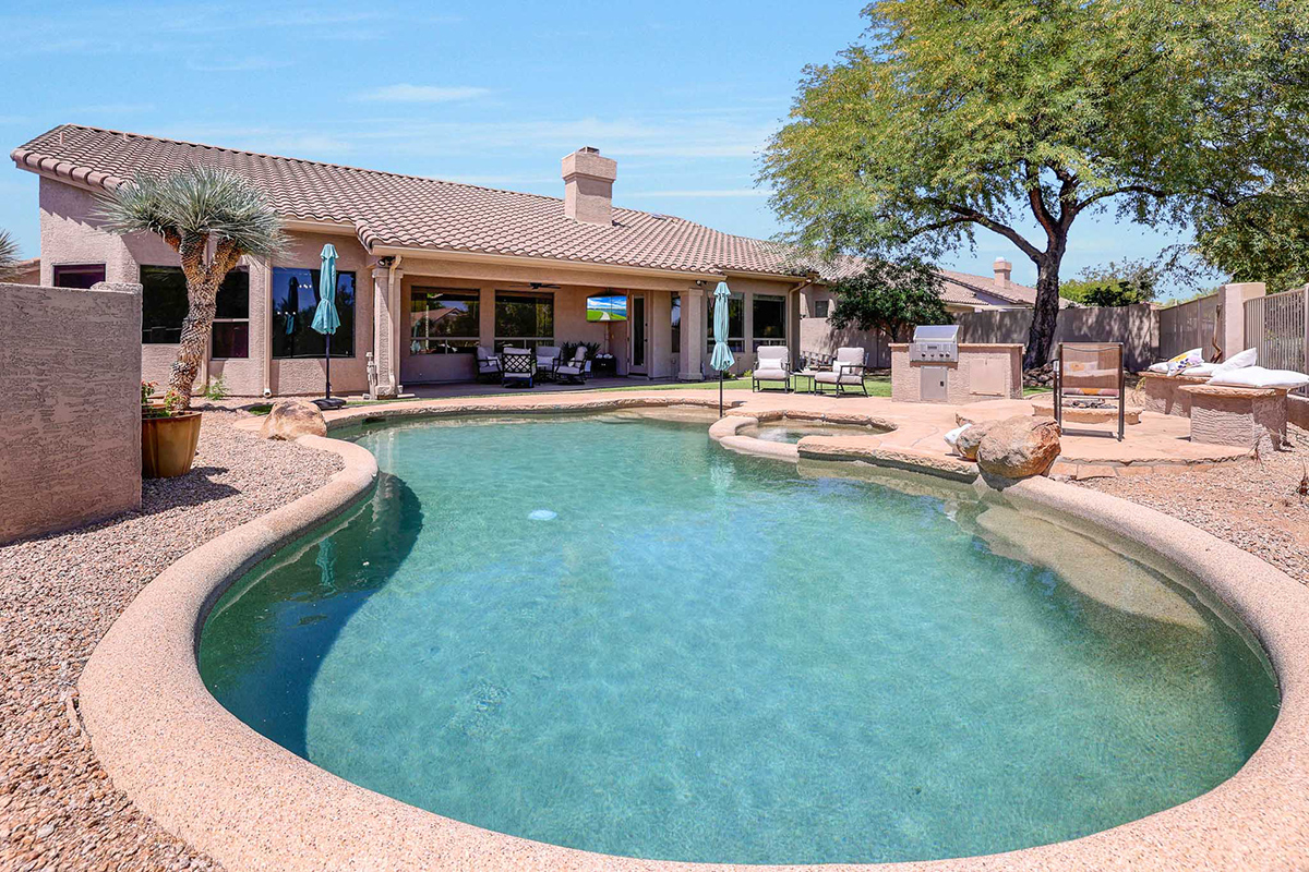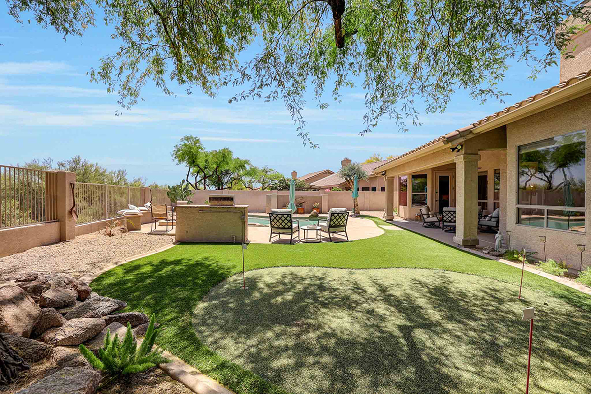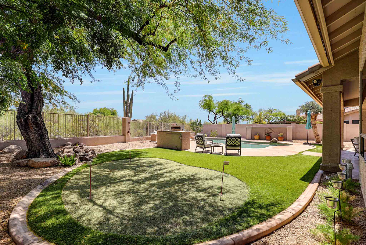 Step outside to your own private paradise, featuring a pebble finish pool, heated spa, flagstone hardscape and mature lush landscaping. There’s even an artificial turf three-hole putting green for the golf enthusiasts!