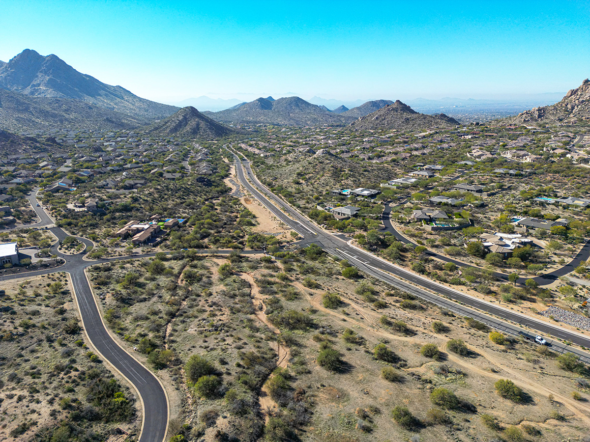 An ideal location – higher elevation, cooler temperatures, great views yet close to shopping, dining, and more. Custom home lot sizes range from 2.5 to over 3 acres within the community to ensure plenty of space and privacy for each home. Minimum home size permitted is 6,500 sf. Car enthusiasts welcome, as the community already boasts multi-car and RV garage structures. Come experience the North Scottsdale lifestyle!