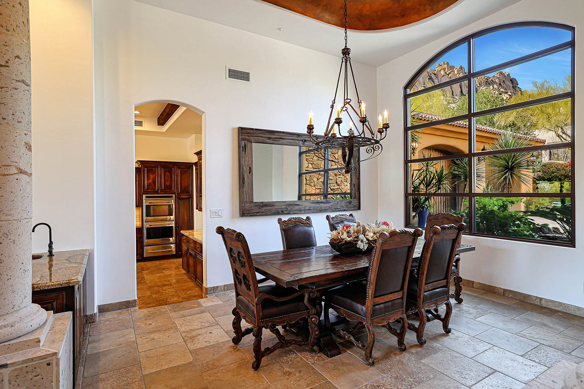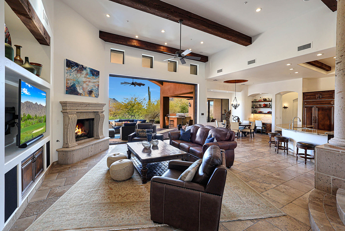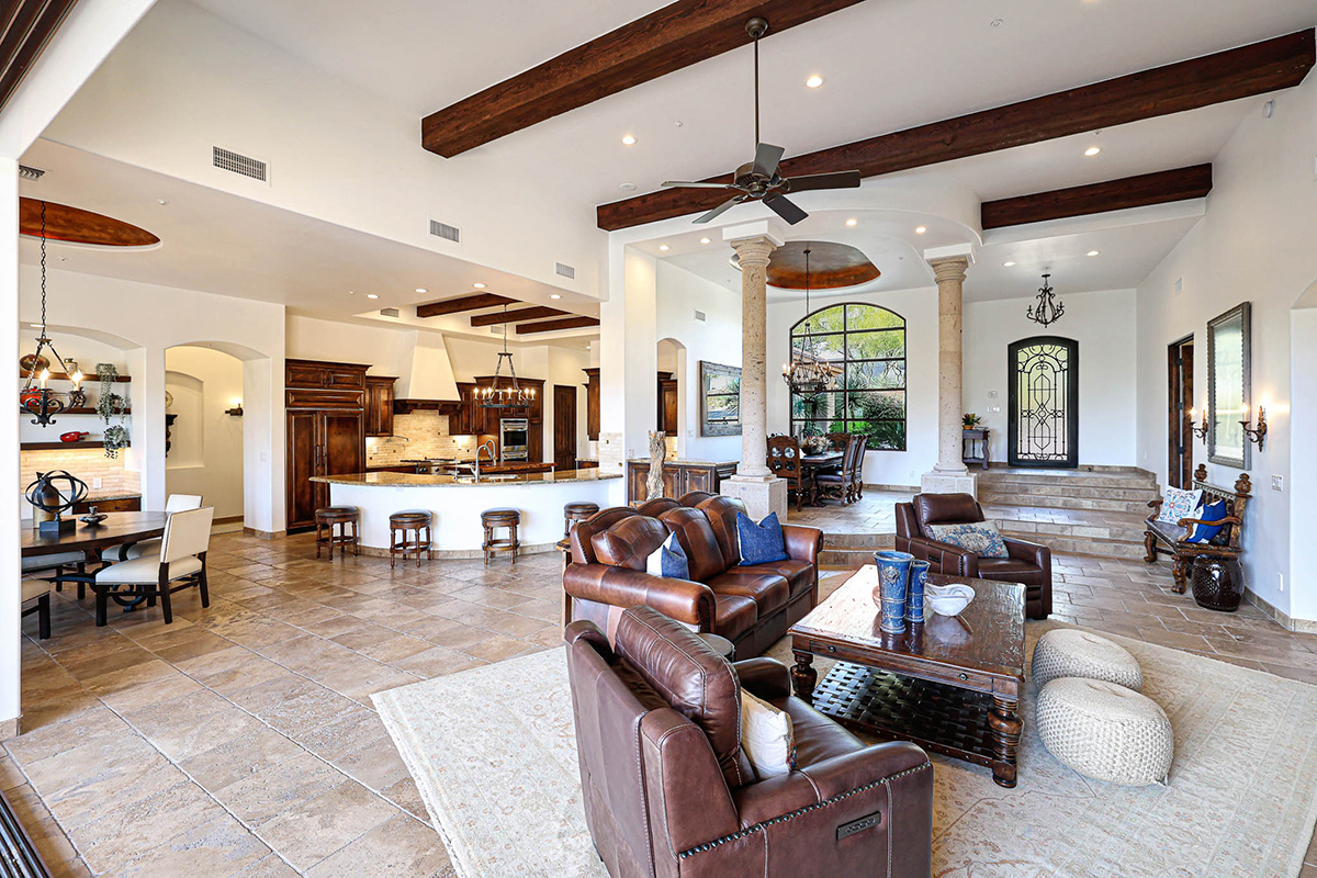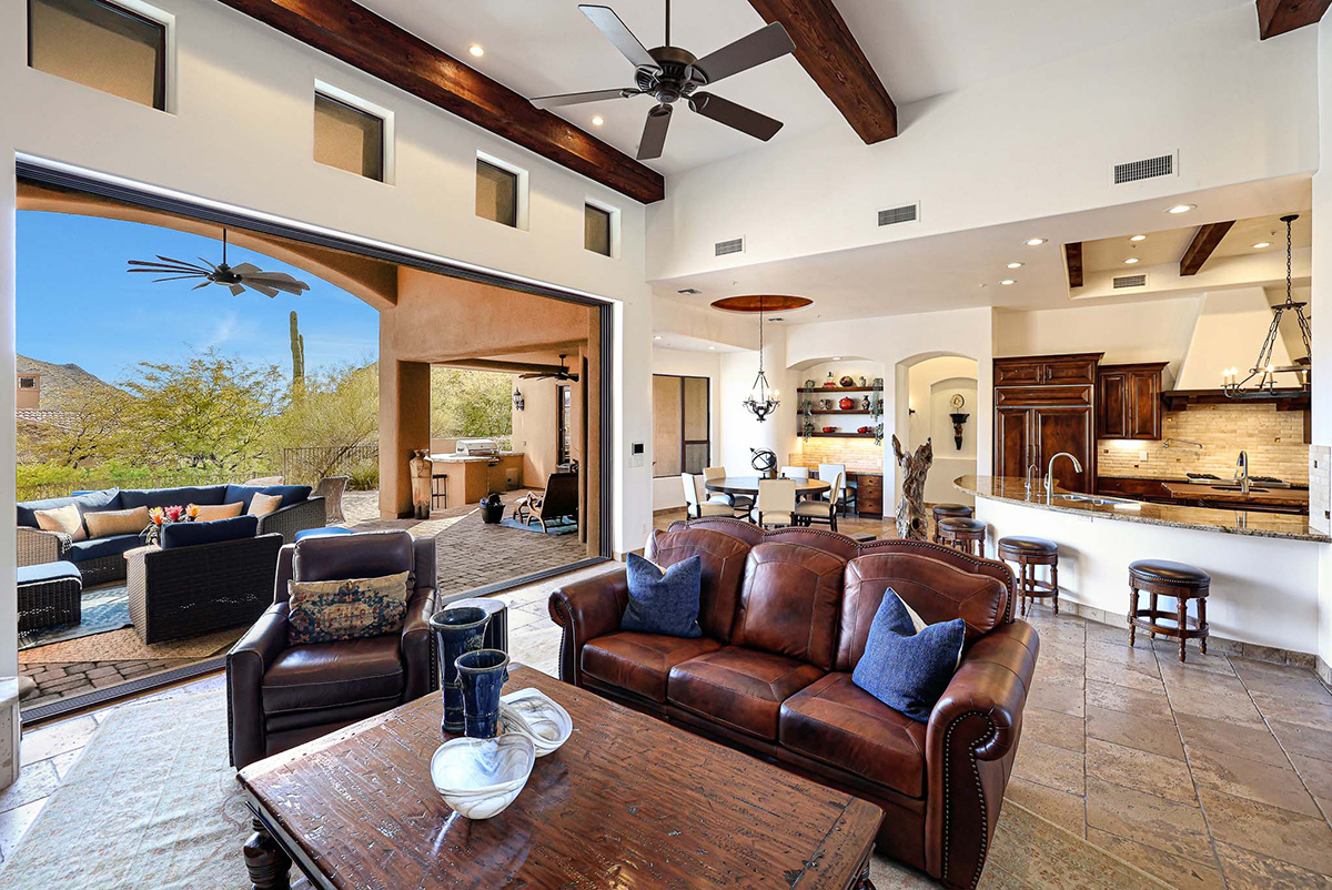Guard-gated Troon Village sets the backdrop for this Old World-style residence that has undergone meticulous upgrades, making it a true gem in this exclusive enclave. The residence offers breathtaking views of the McDowell Mountain Range from both the front and back. The open floor plan, soaring ceilings, and retractable pocket doors seamlessly blend indoor and outdoor living spaces.