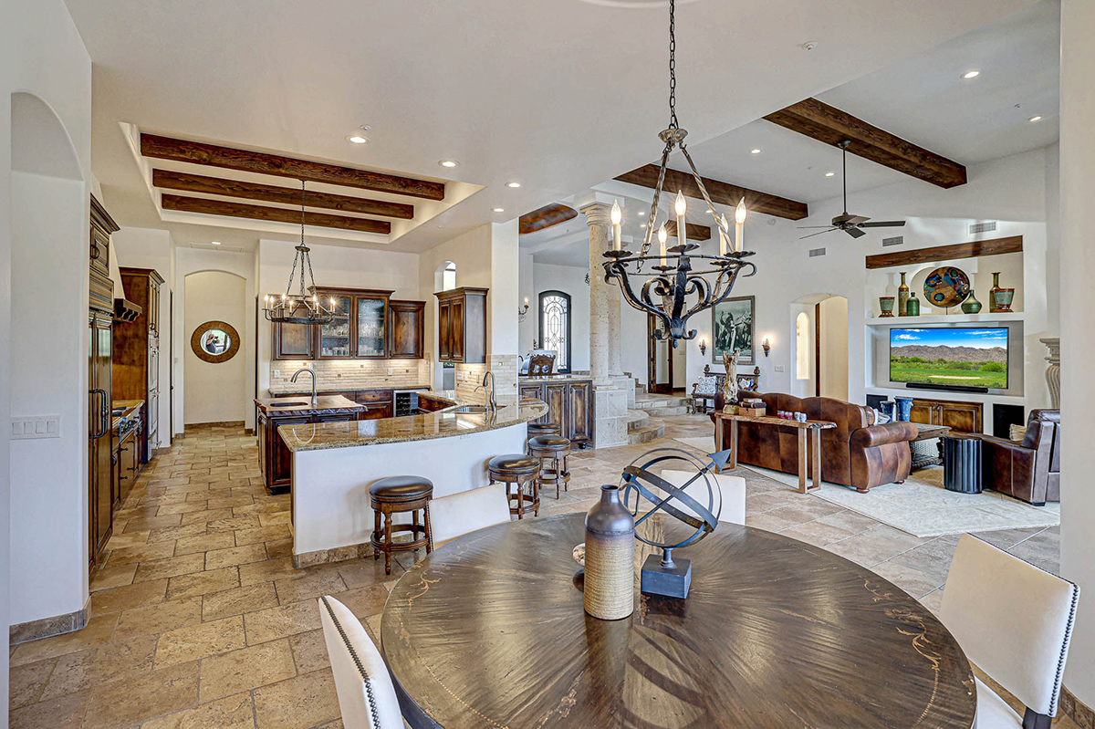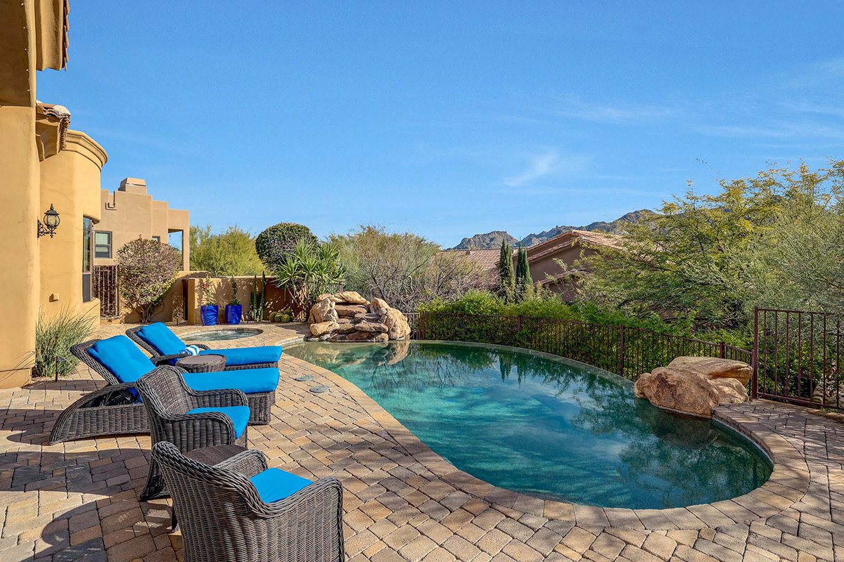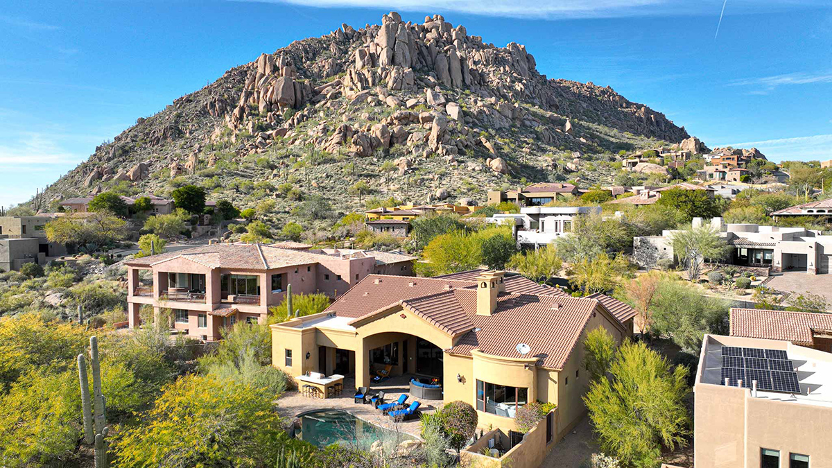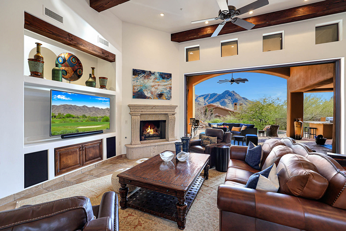 Guard-gated Troon Village sets the backdrop for this Old World-style residence that has undergone meticulous upgrades, making it a true gem in this exclusive enclave. The residence offers breathtaking views of the McDowell Mountain Range from both the front and back. The open floor plan, soaring ceilings, and retractable pocket doors seamlessly blend indoor and outdoor living spaces.