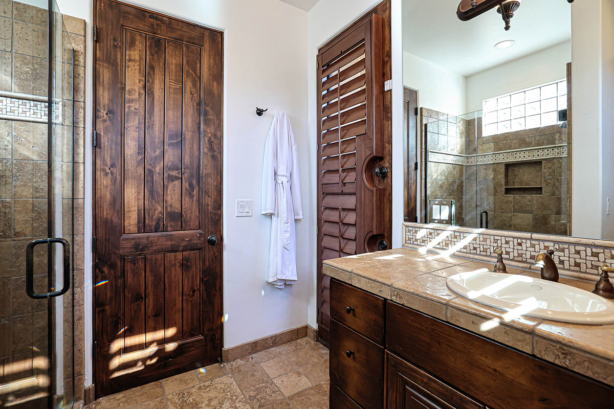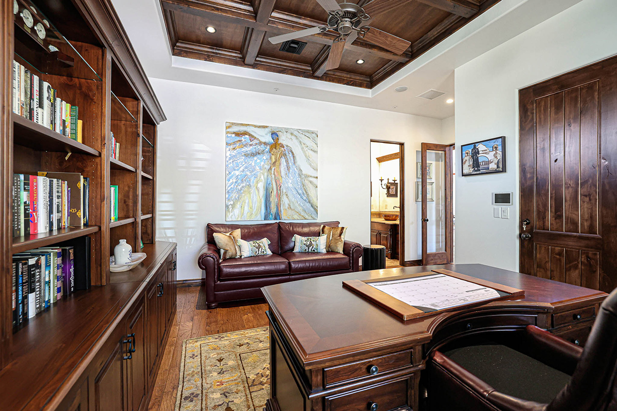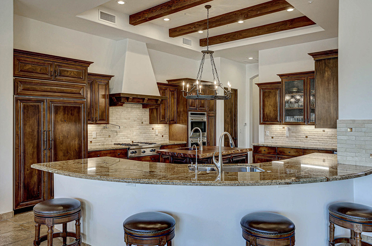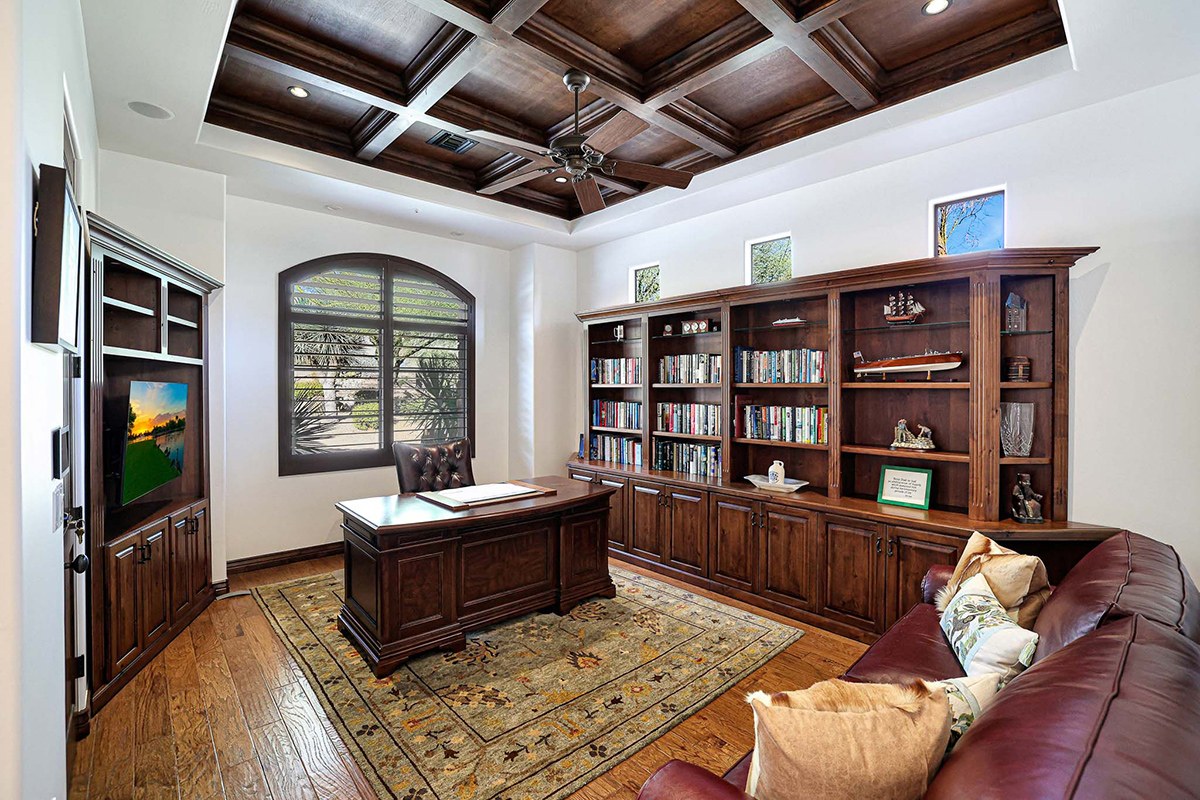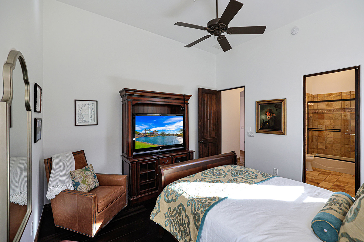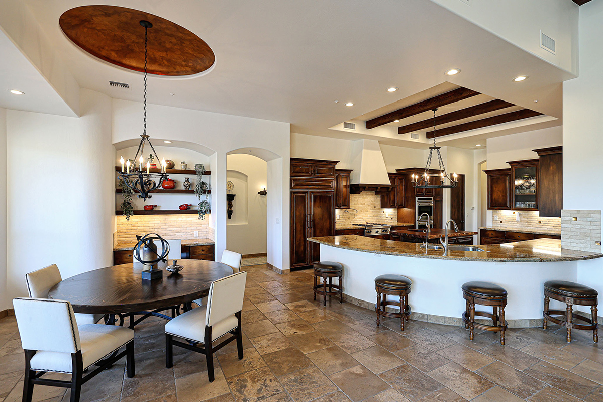 Premium finishes, including Wolf appliances, granite countertops, and tumbled travertine flooring, grace the interior. The property is equipped with an ELAN wireless control system for audio and shades, offering modern convenience. With its perfect balance of sophistication and comfort, this Troon Village residence is a captivating retreat for those seeking the epitome of luxury living.