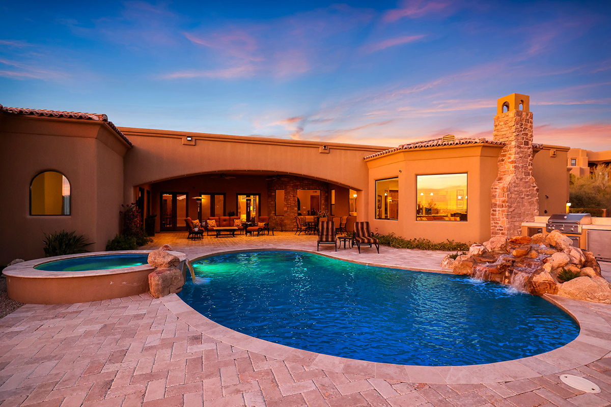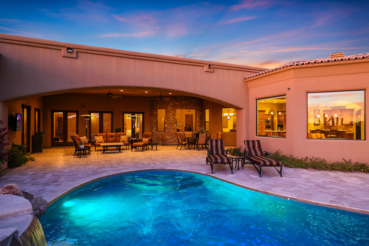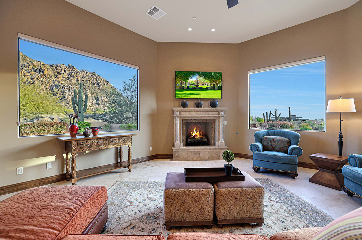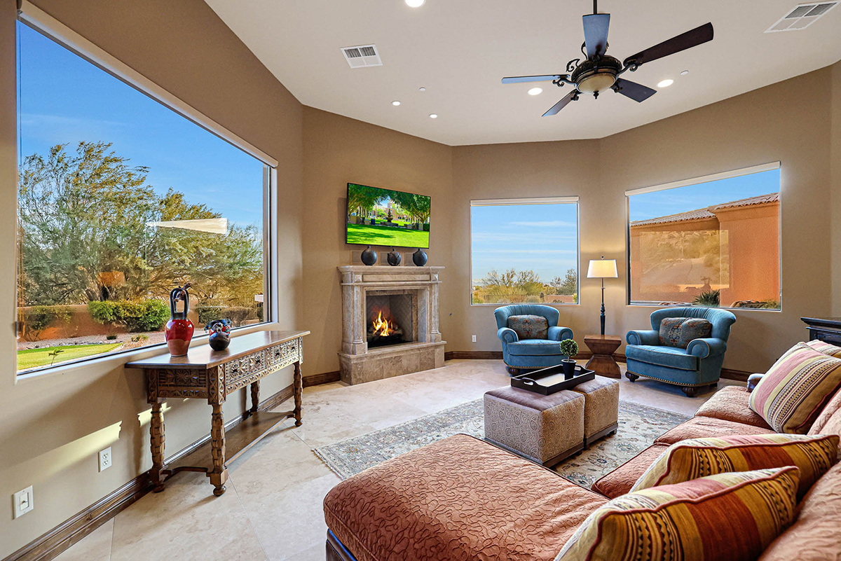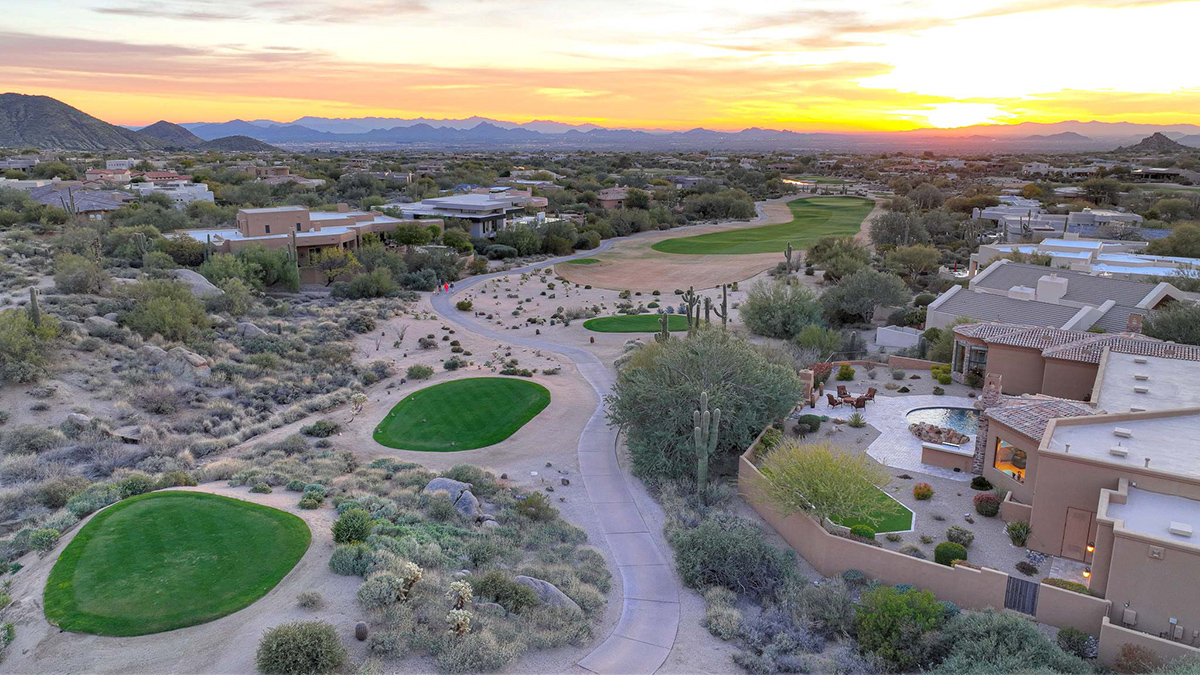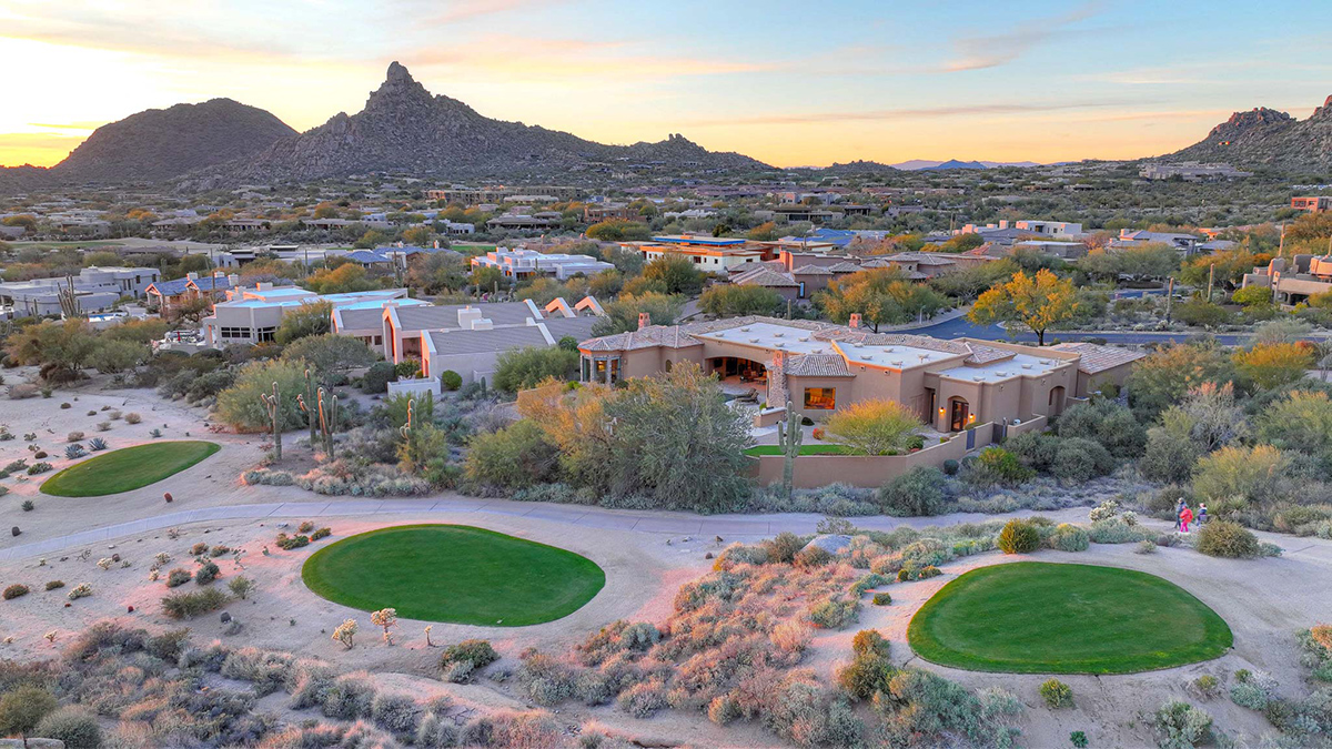 Welcome to the epitome of luxury living in the guard-gated enclave of Windy Walk Estates at Troon Village. This exquisite residence is strategically positioned on the 6th tee box of Troon Country Club’s private course, offering unparalleled views of the golf course, Troon Mountain, Pinnacle Peak, and the glittering city lights. The supreme location of this home sets the stage for a lifestyle of tranquility and grandeur. All furnishings and accessories available by separate bill of sale.