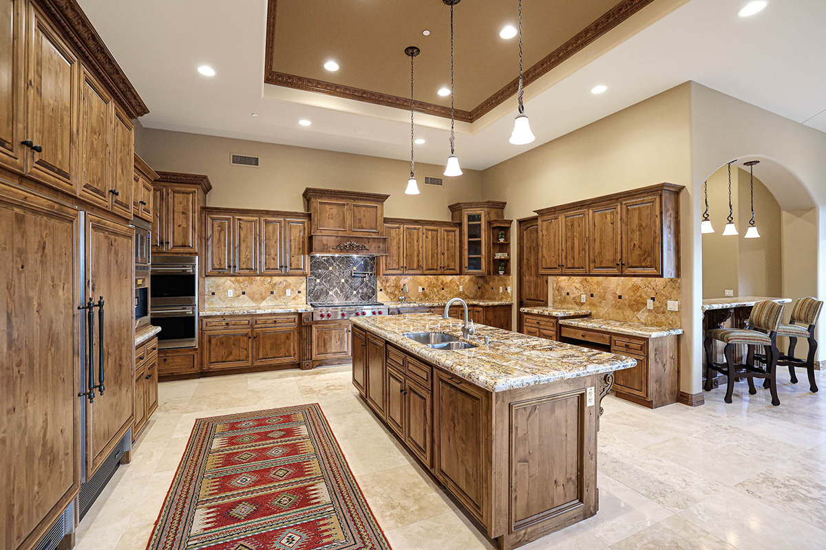 The kitchen is an entertainer’s dream with attached breakfast nook, stainless steel appliances, two dishwashers, two sinks, Subzero Fridge/Freezer, Wolf gas cooktop, double ovens, Miele coffee machine, center island and walk-in pantry. Formal living room has a centerpiece fireplace in a tranquil setting. Formal dining room has a butler’s pantry and a fireplace as well.
