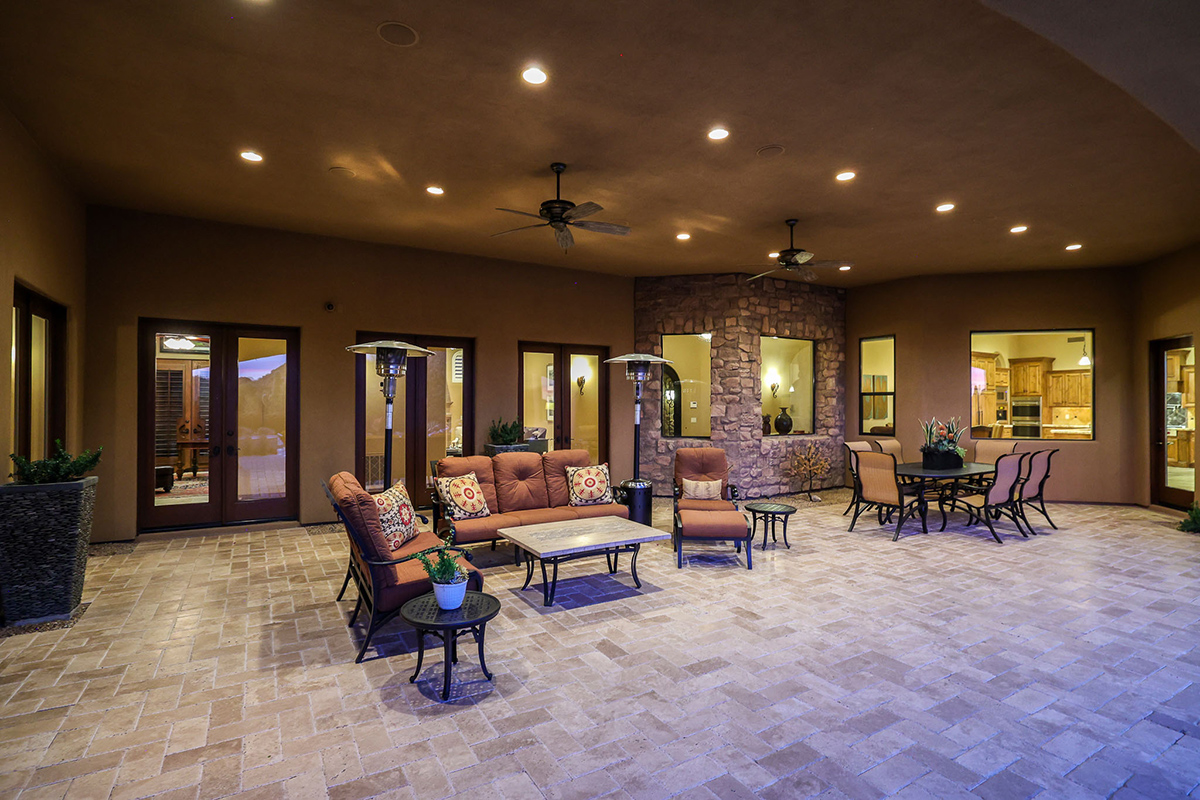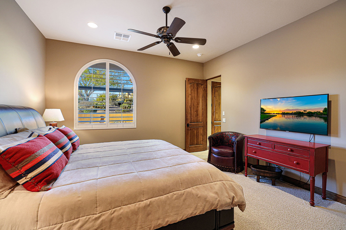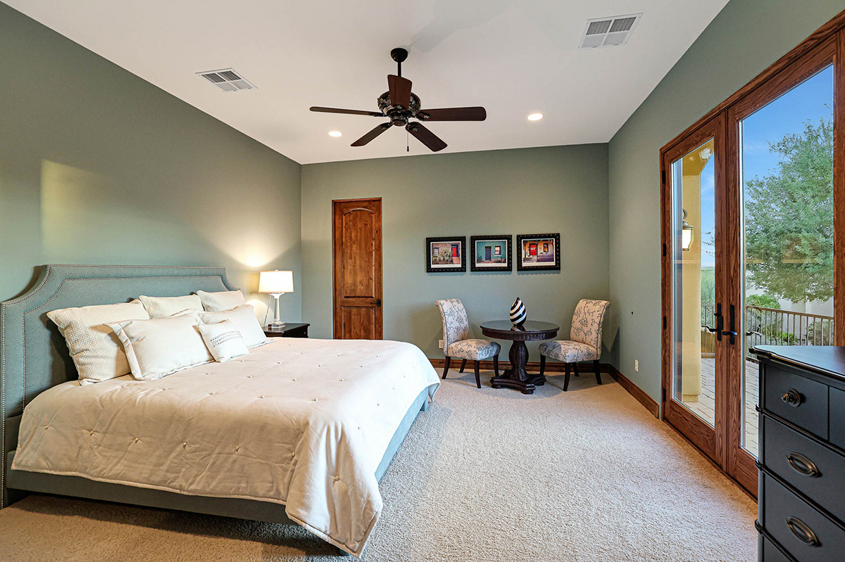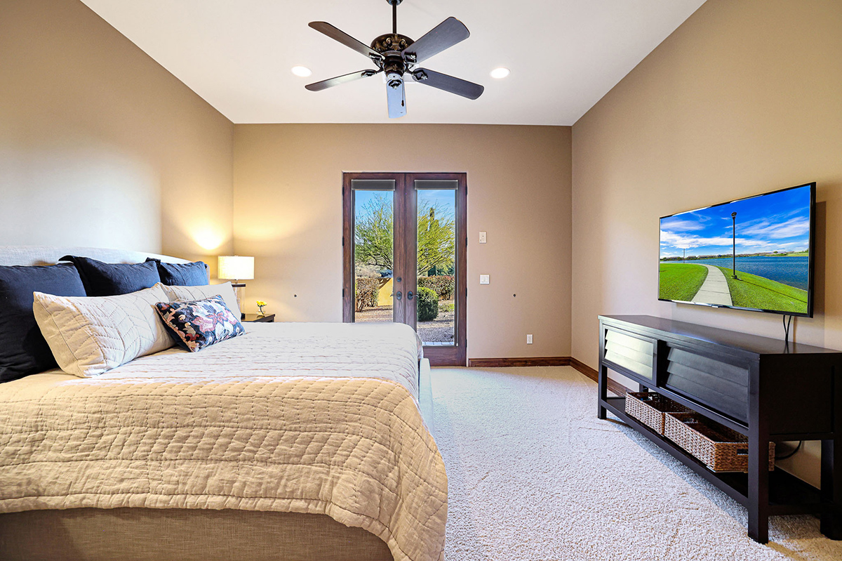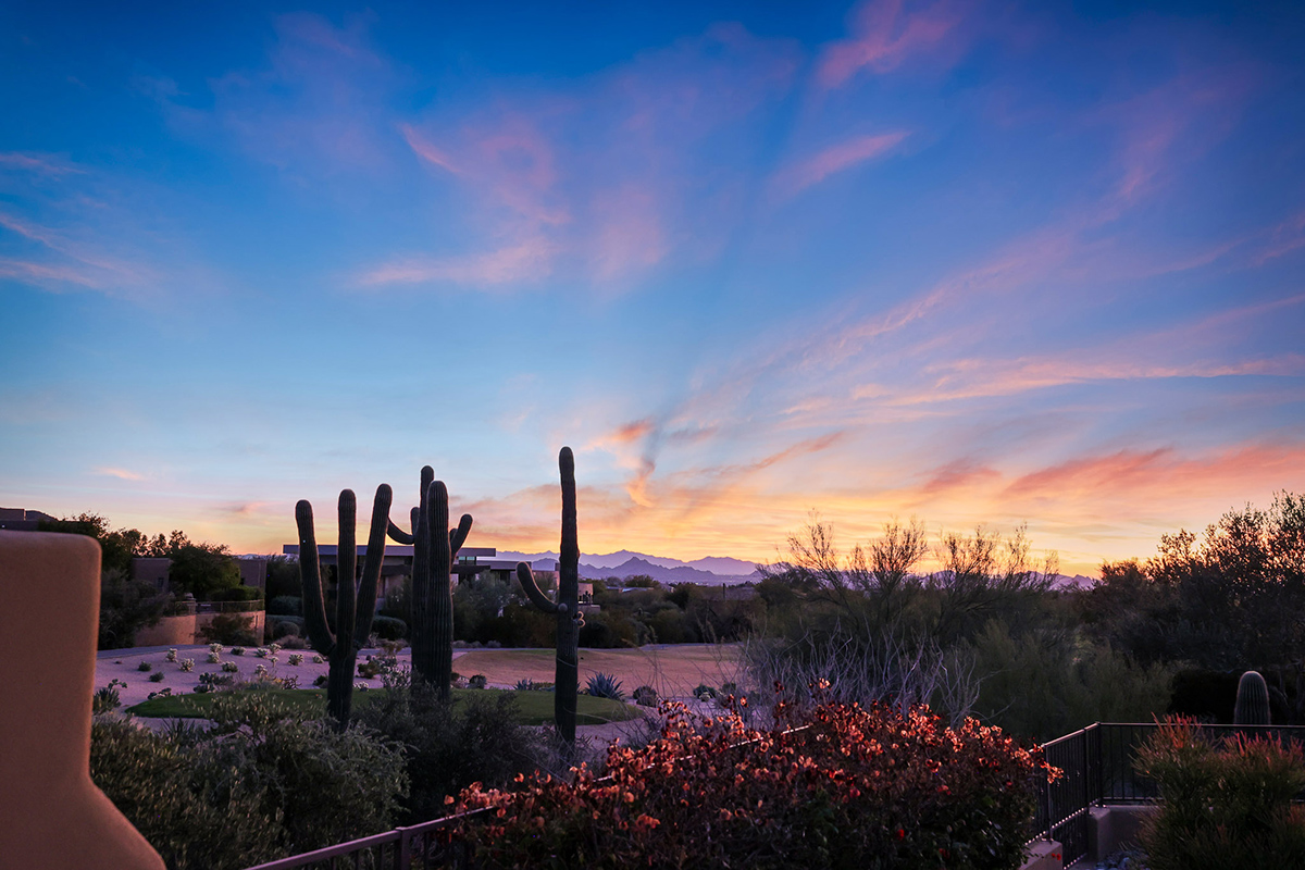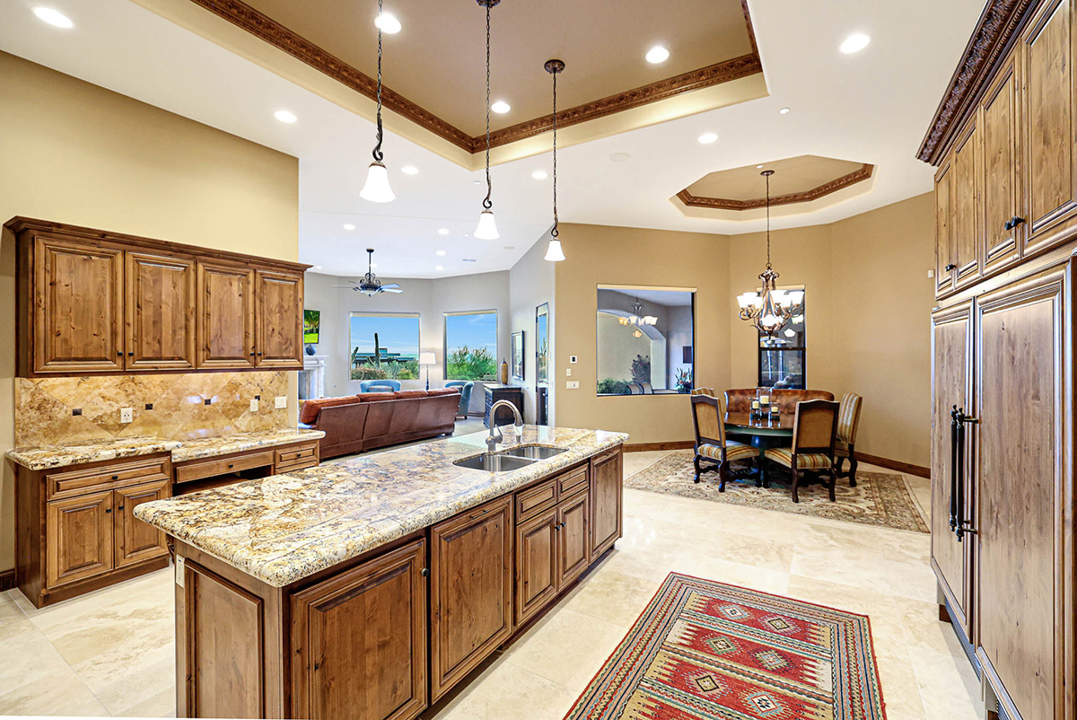 Boasting a thoughtfully designed floor plan spanning 5,821 square feet, this residence features five bedrooms, four and a half bathrooms, a private office, formal living and dining rooms, and a kitchen/family great room. With three laundry rooms and a four-car garage equipped with a mini-split for climate control in the three-bay side, convenience is seamlessly woven into the fabric of daily life. An attached guest house with a separate entry, its own garage, and up-close views of Pinnacle Peak is perfect for long-term guests or serving as mother-in-law quarters.