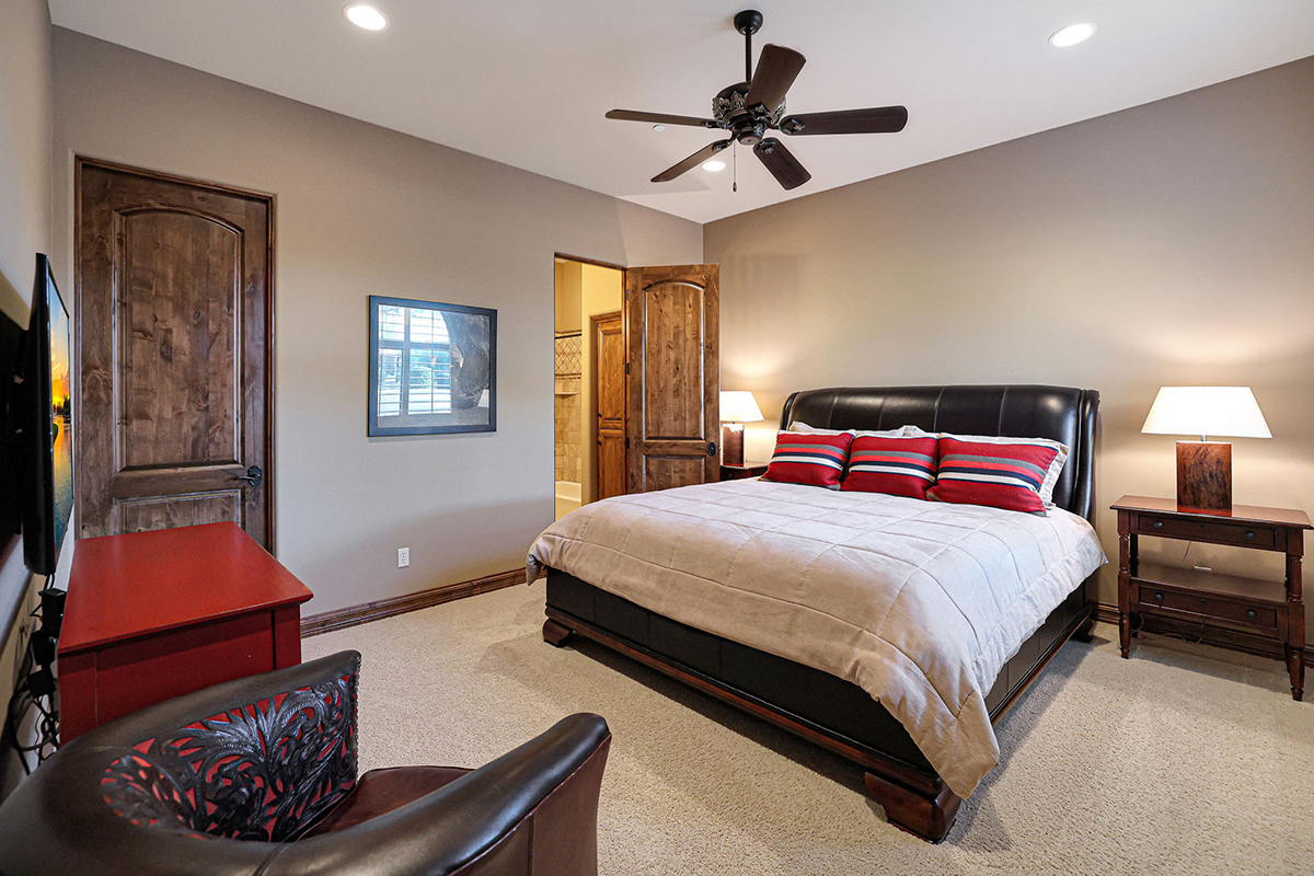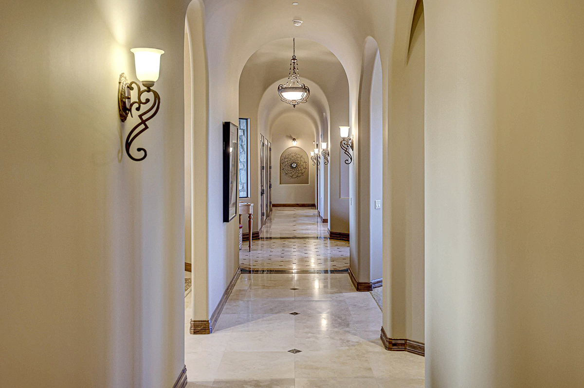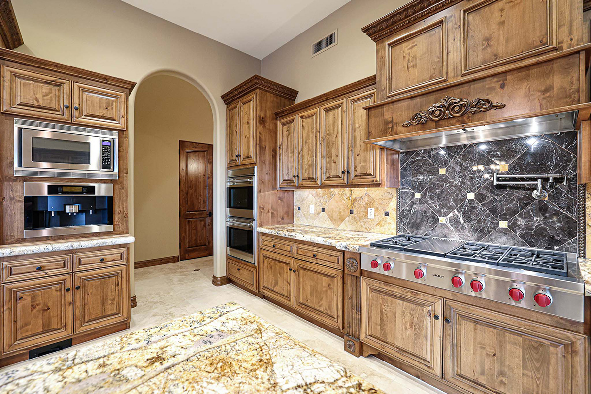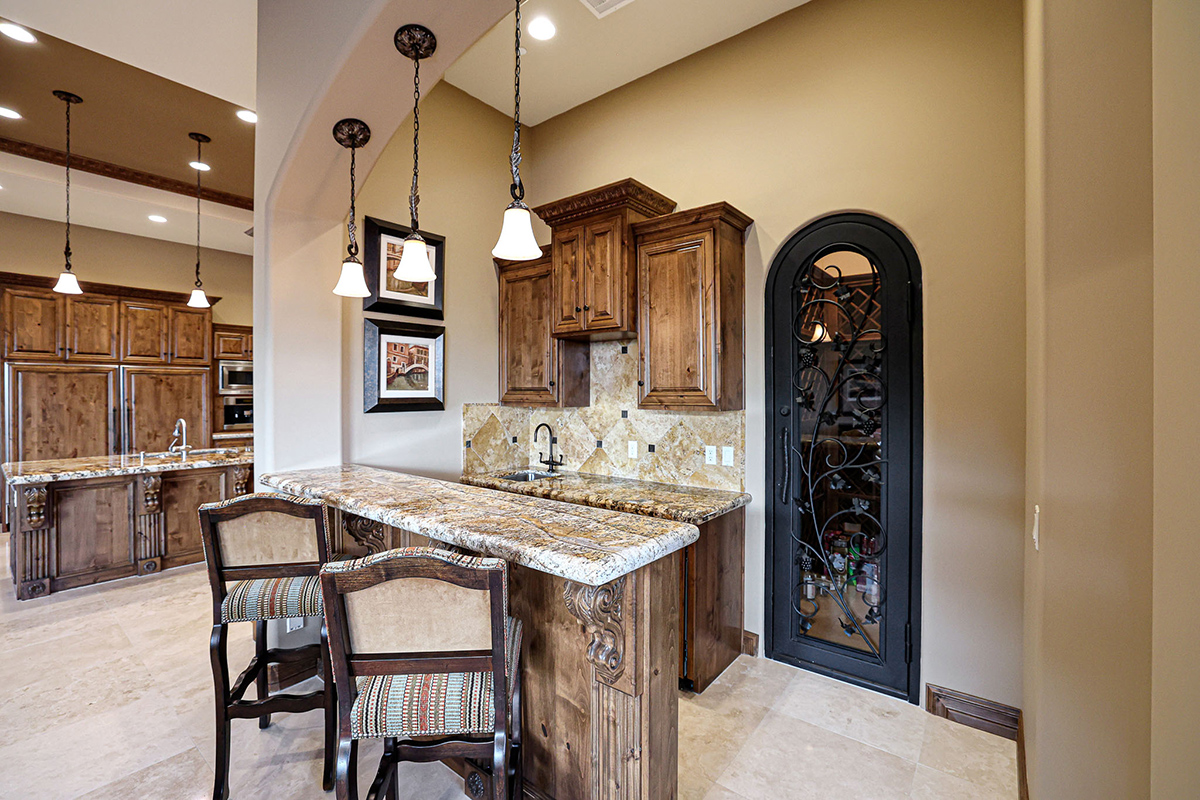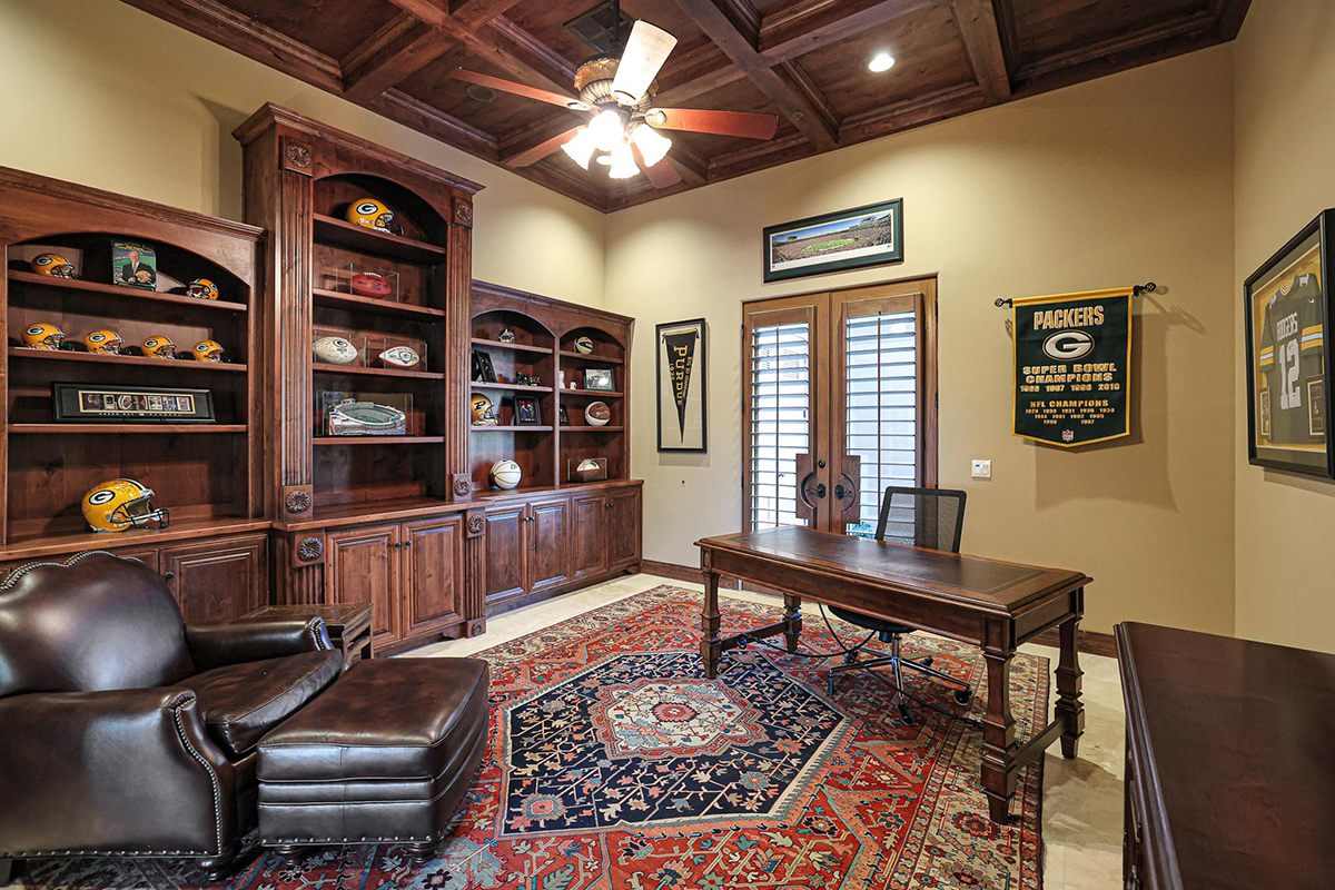 Every detail within this home exudes sophistication, from the granite countertops to the knotty alder cabinets throughout. The family room is a masterpiece, showcasing a fireplace, wrap-around view windows, a wet bar, and an impressive 300-plus bottle wine closet. The private office boasts beautiful built-in bookshelves and a box-paneled ceiling, while galleria hallways overlook the stunning exterior.