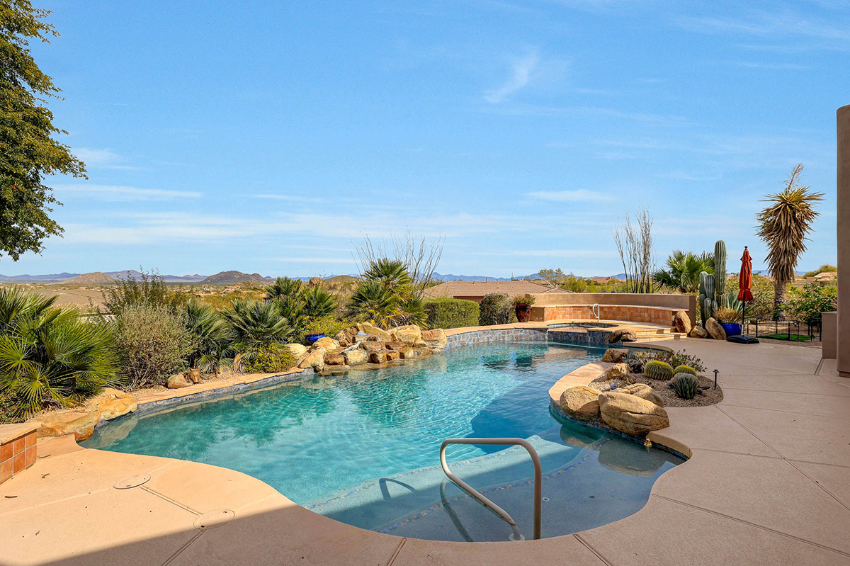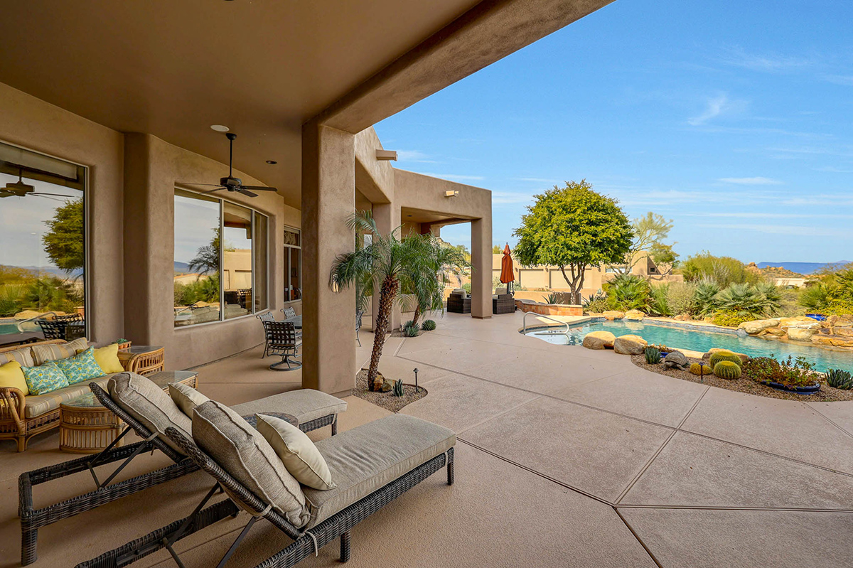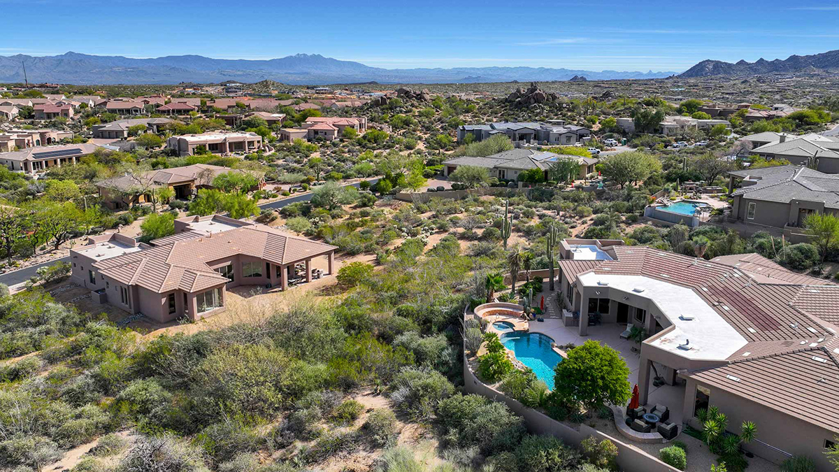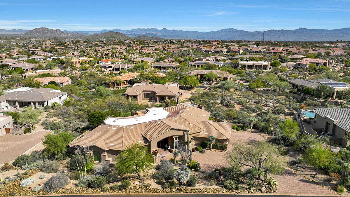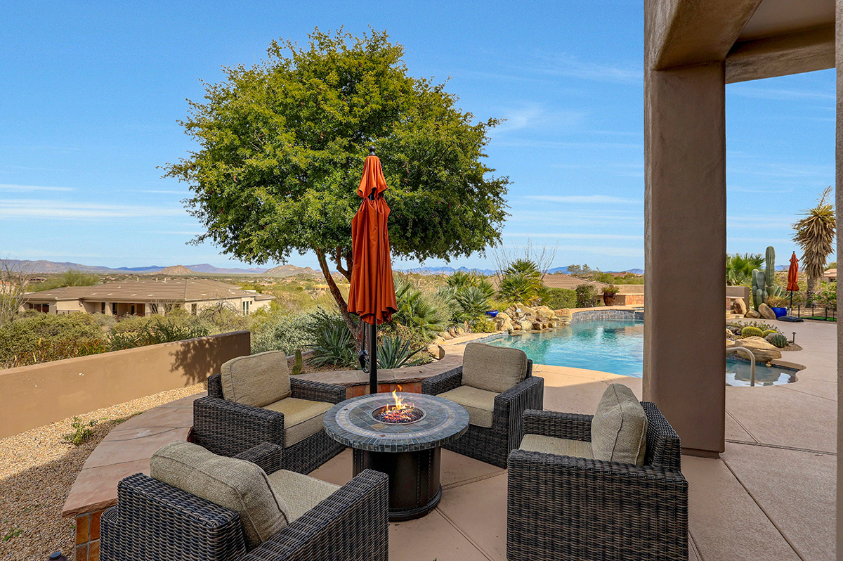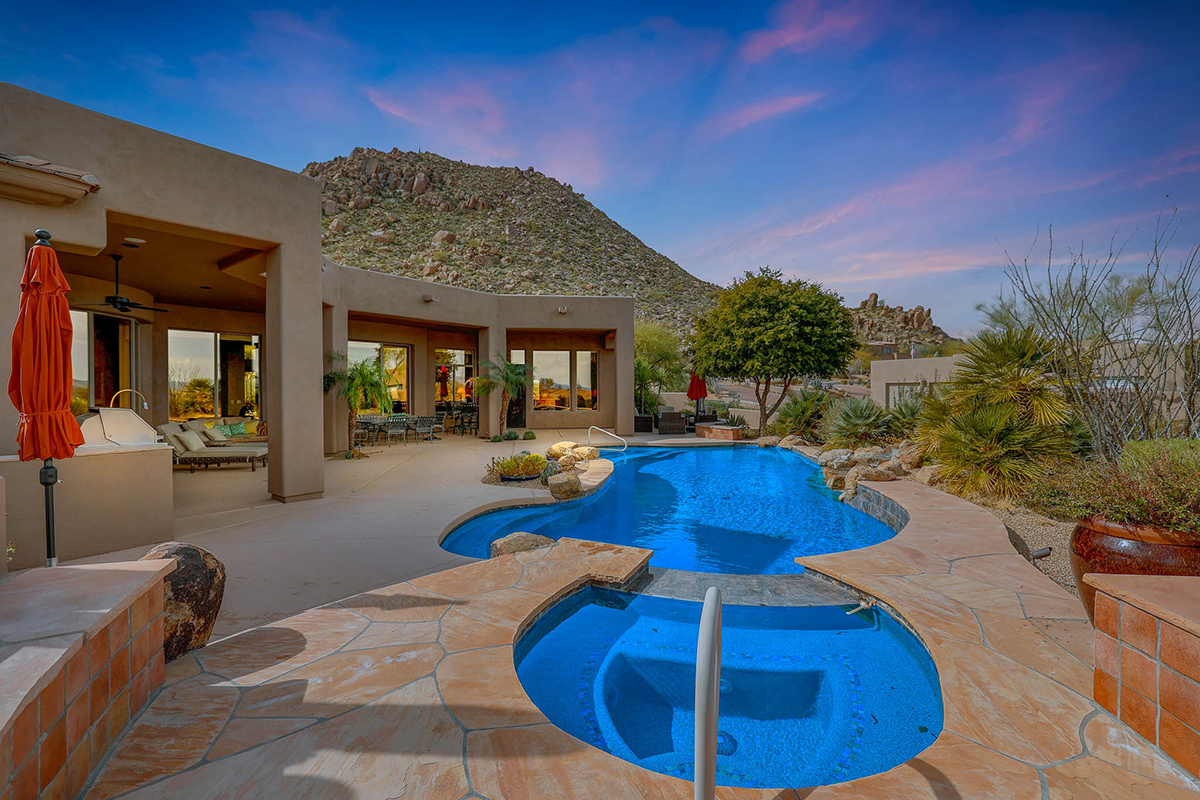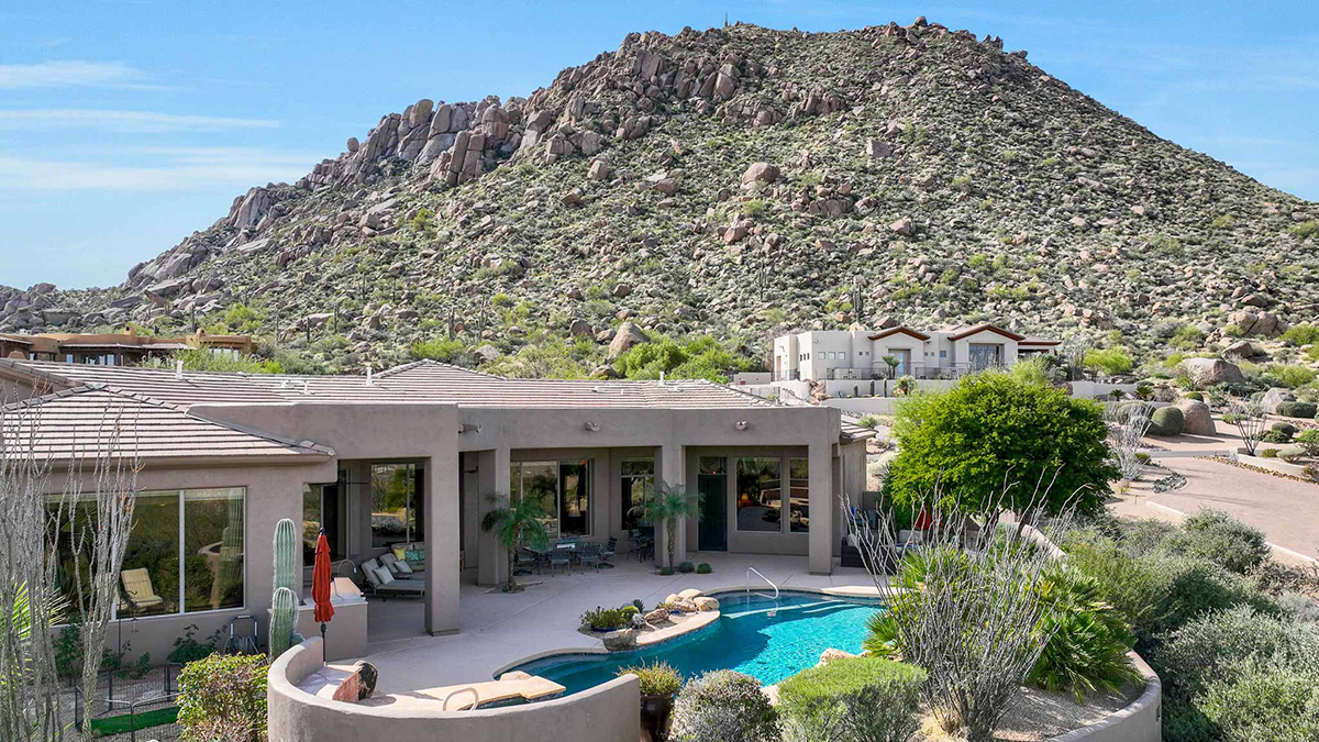 Views, Views, and more Views! Perched majestically on an elevated position within the exclusive guard-gated Troon Village, this exceptional residence offers an unparalleled visual feast, showcasing breathtaking views that span from up-close boulders and Troon Mountain to the distant beauty of Four Peaks—all seamlessly unobstructed. The home features four bedrooms, all ensuite, a powder bath for guests, a three car garage, and 4,602 square feet of living space.