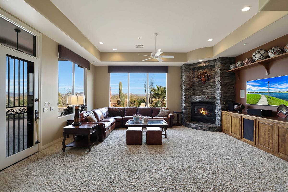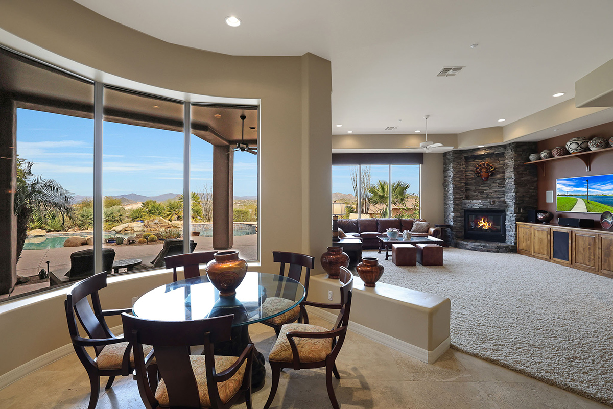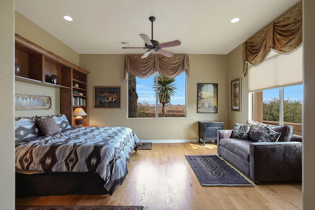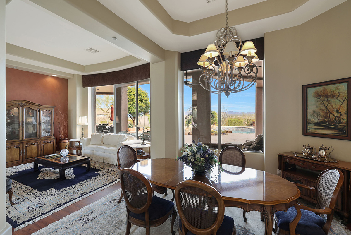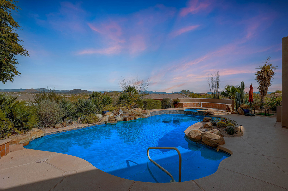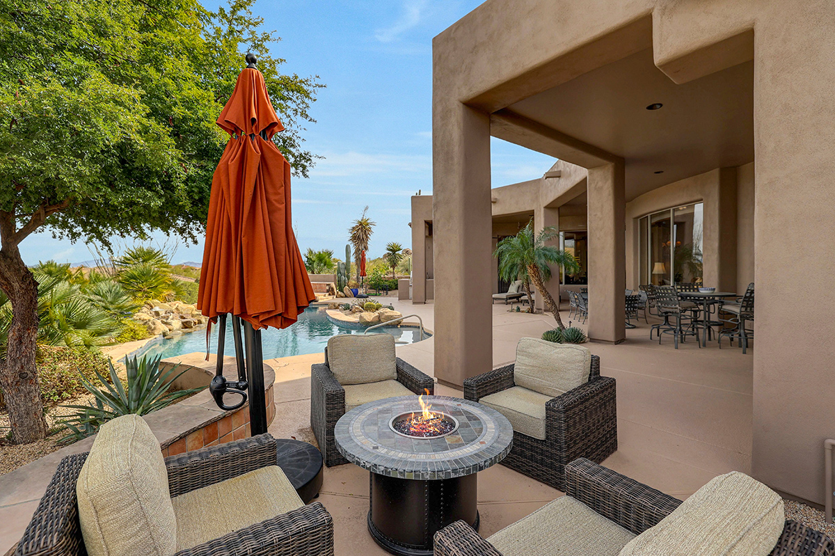 Views, Views, and more Views! Perched majestically on an elevated position within the exclusive guard-gated Troon Village, this exceptional residence offers an unparalleled visual feast, showcasing breathtaking views that span from up-close boulders and Troon Mountain to the distant beauty of Four Peaks—all seamlessly unobstructed. The home features four bedrooms, all ensuite, a powder bath for guests, a three car garage, and 4,602 square feet of living space.