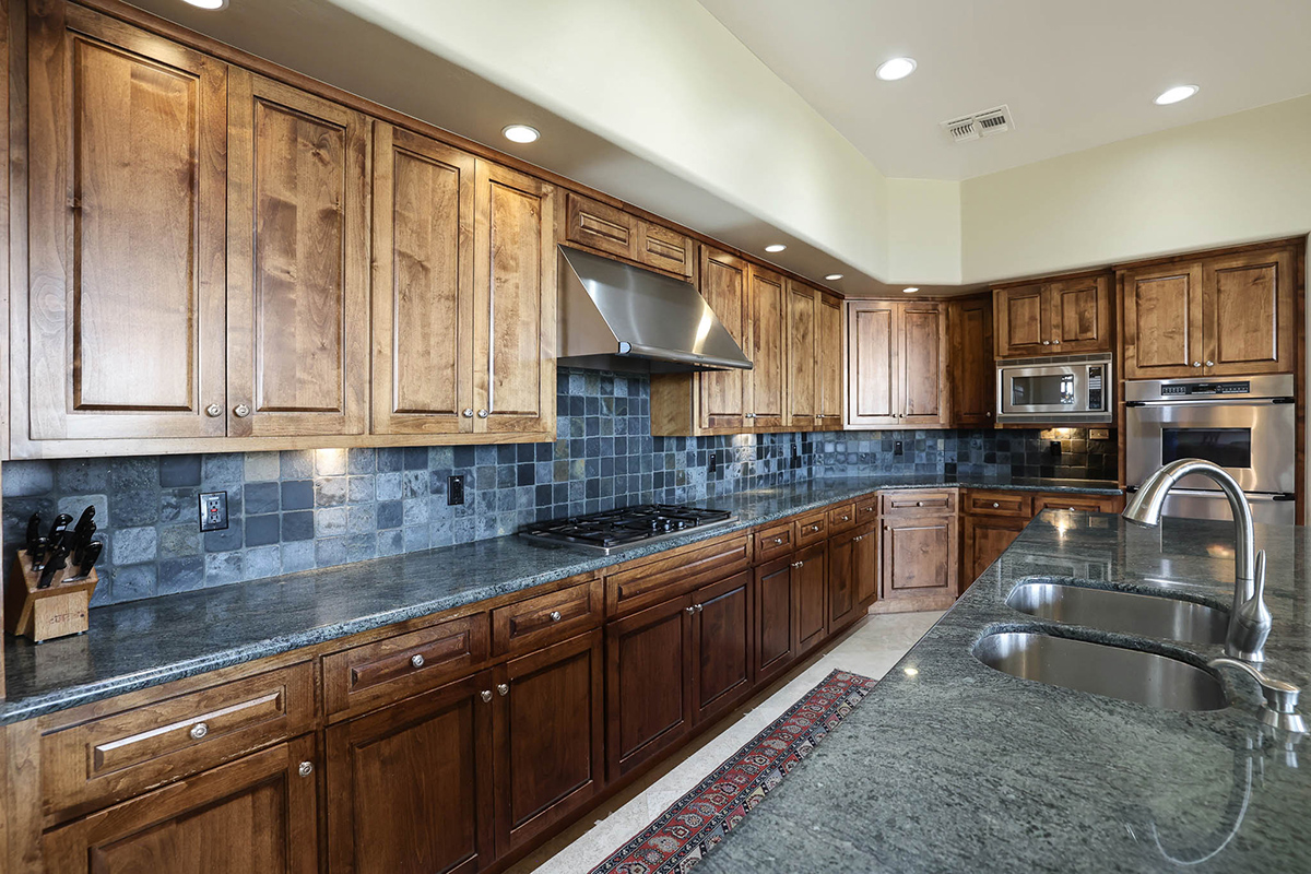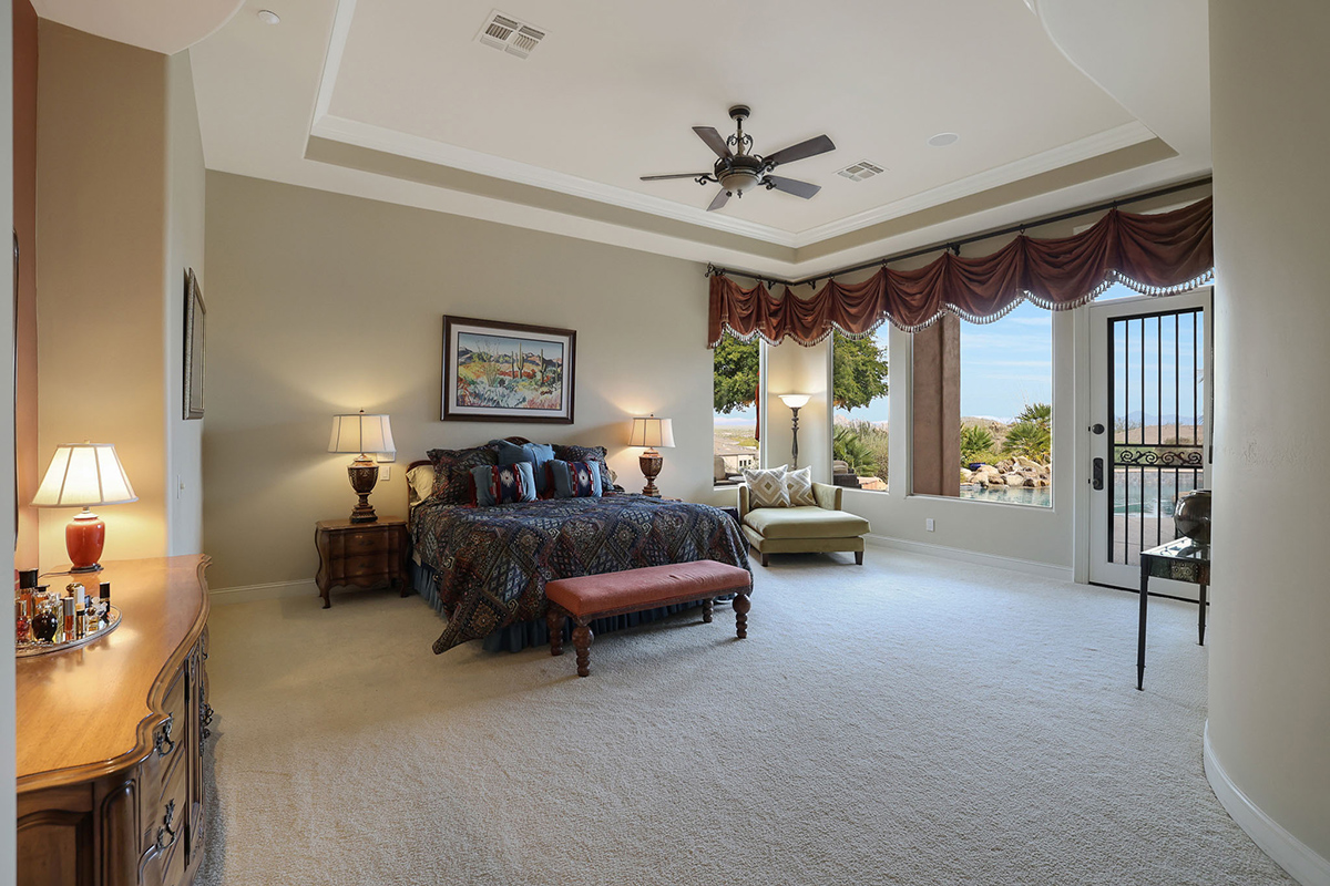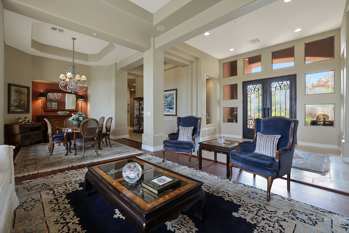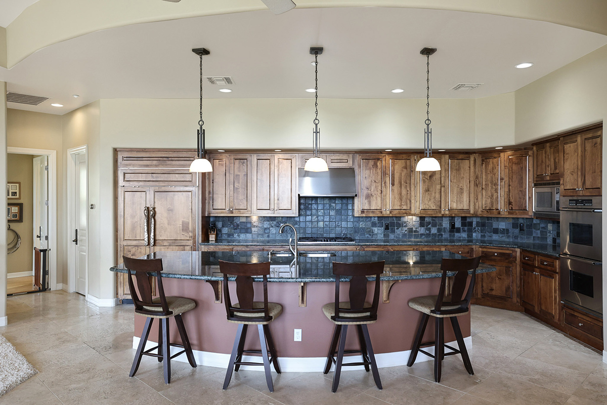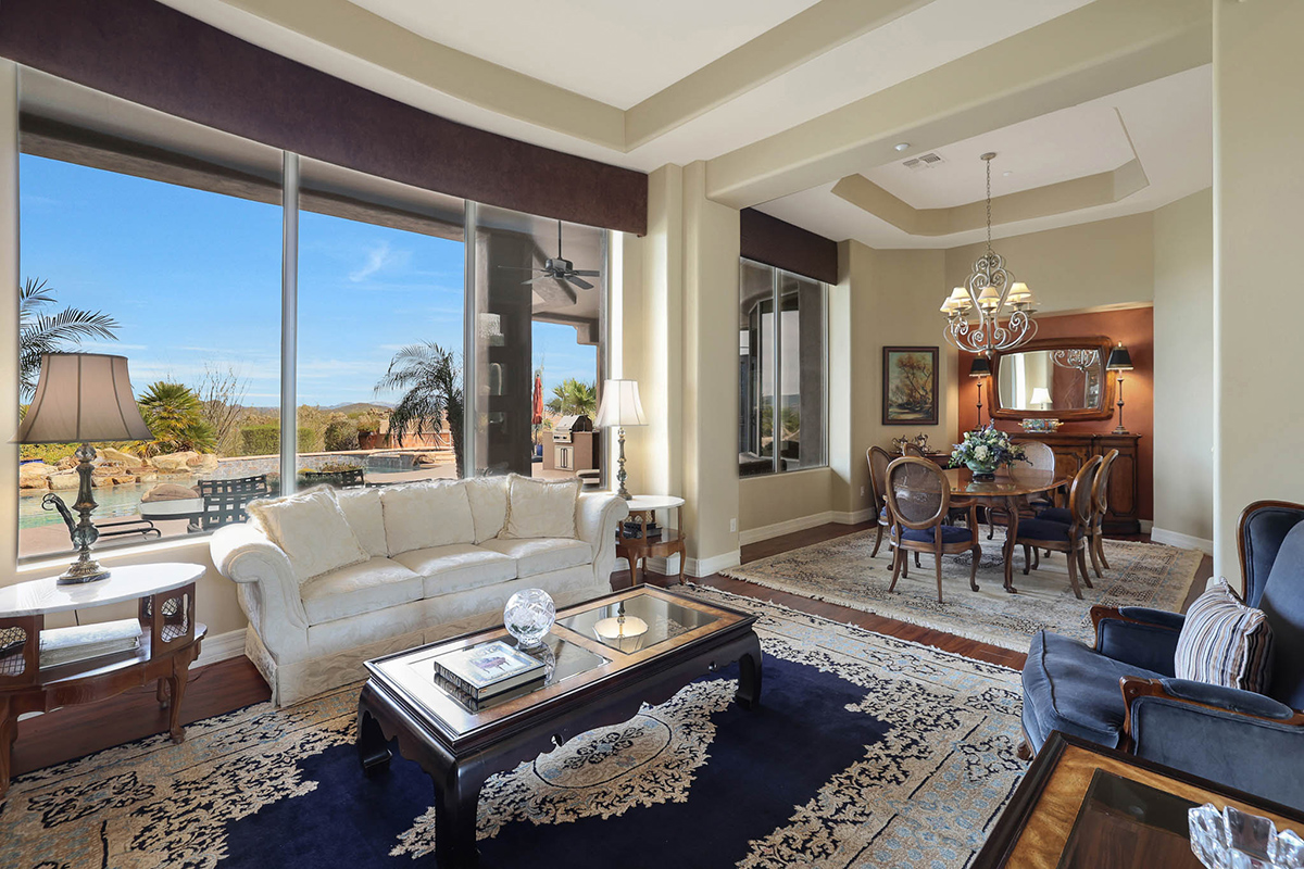 A testament to thoughtful design, the home is strategically oriented to maximize these awe-inspiring views, creating an atmosphere of tranquility and natural beauty. The interior boasts flowing living spaces that are both light-filled and spacious, characterized by high ceilings and expansive windows that capture the essence of the surrounding landscape. The heart of the home is an entertainer’s dream, with an open kitchen and family room that form a central hub for social gatherings.