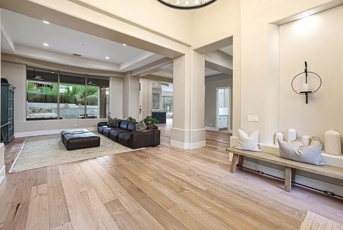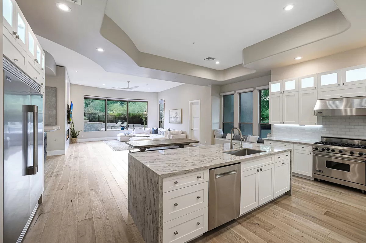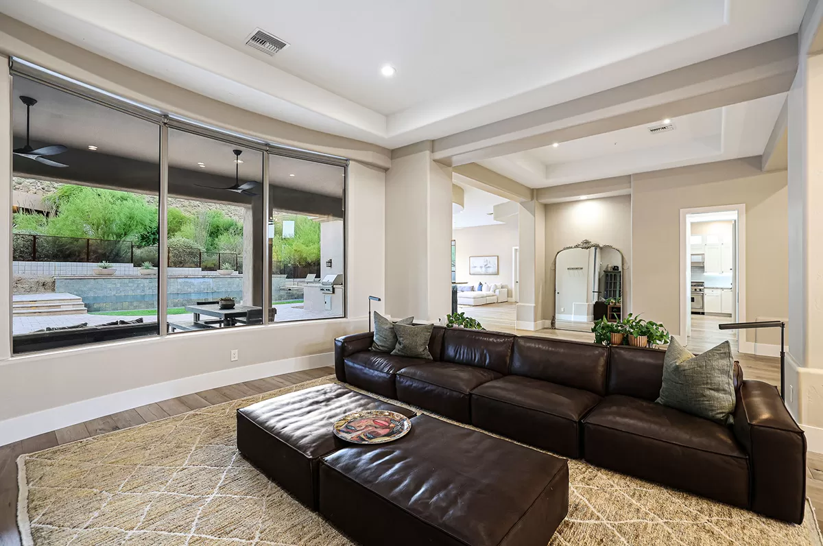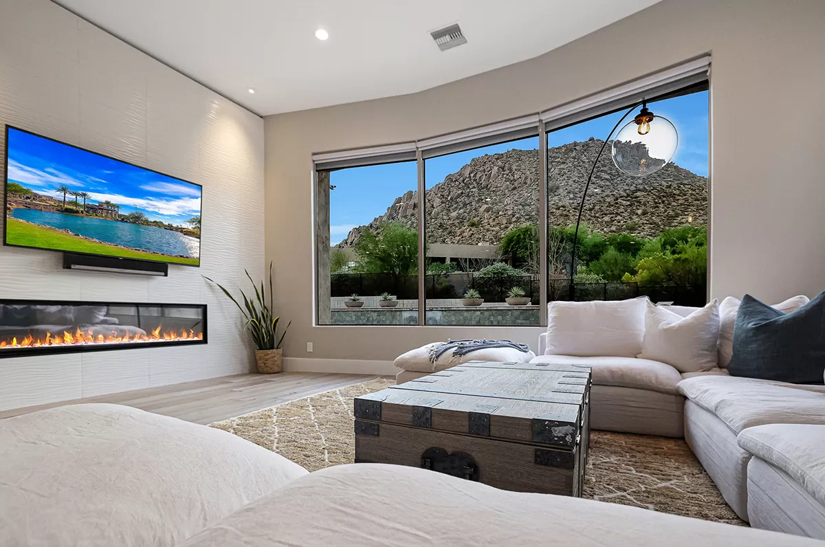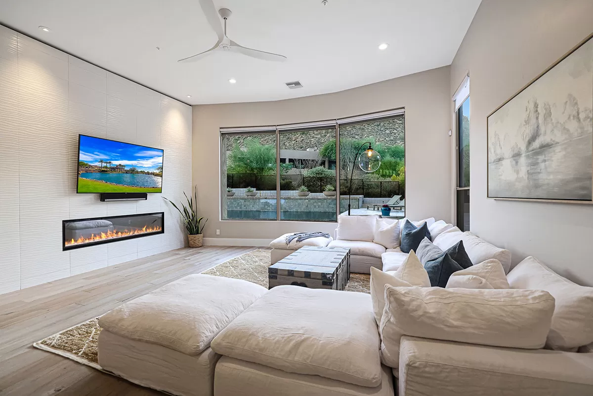 Stunning Windy Walk Estates at Troon Village home has been completely remodeled with on-trend and premium finishes! At over 5,100 square feet, this single level, no interior step home has an open spacious feel. Enjoy up close views to Troon Mountain from the backyard, along with a negative edge pool with spillover and waterfall feature, separate spa, raised patios for lounging, artificial turf, fire pit, built-in barbecue, large covered patio, tumbled travertine hardscape and access to the detached guest house.