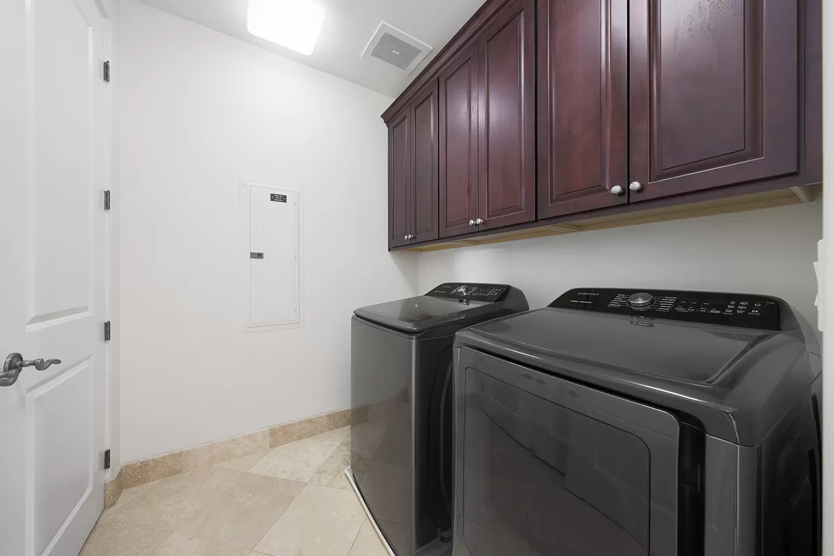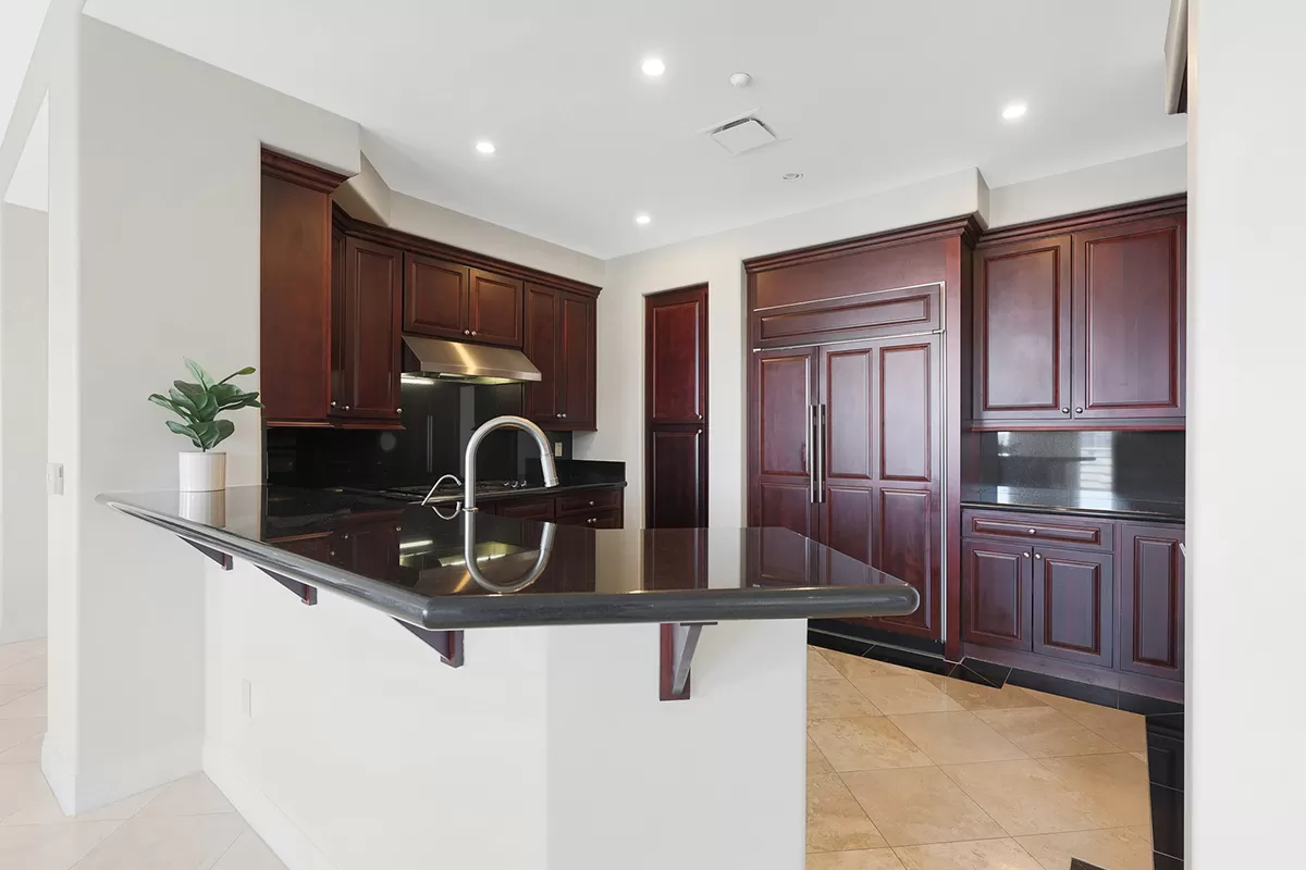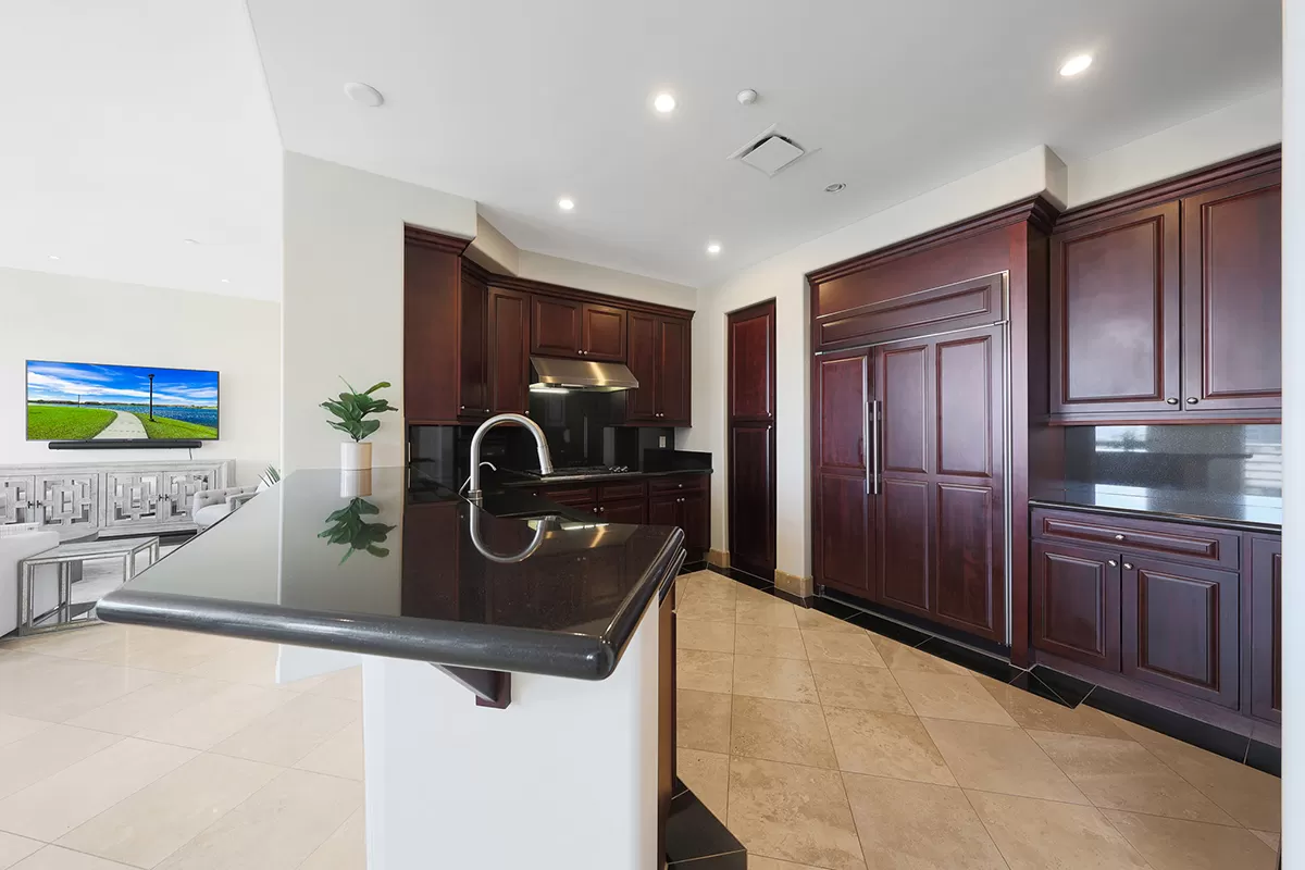 Designed for both comfort and style, the open-concept floorplan features two private bedroom suites, a den ideal for a home office or flex space, and an elegant powder room. High-end touches include rich custom cabinetry, sleek stone flooring, and premium Sub-Zero, Wolf, and Asko appliances—including a gas cooktop for culinary enthusiasts.