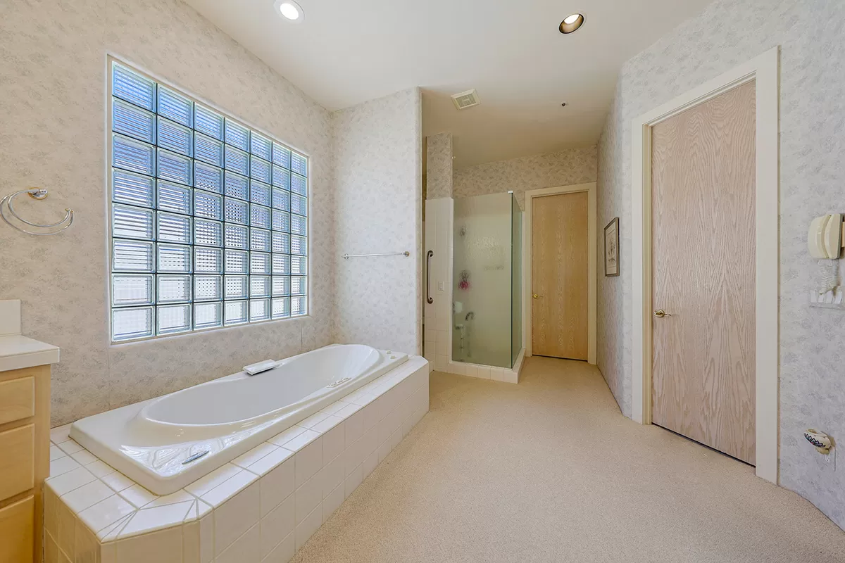 Expansive windows throughout flood the interior with natural light, creating a bright and airy atmosphere in every room. The thoughtfully designed floor plan includes two bedrooms sharing a Jack-and-Jill bathroom, an ensuite guest bedroom, and a luxurious primary suite complete with a separate shower and tub, as well as a spacious walk-in closet.