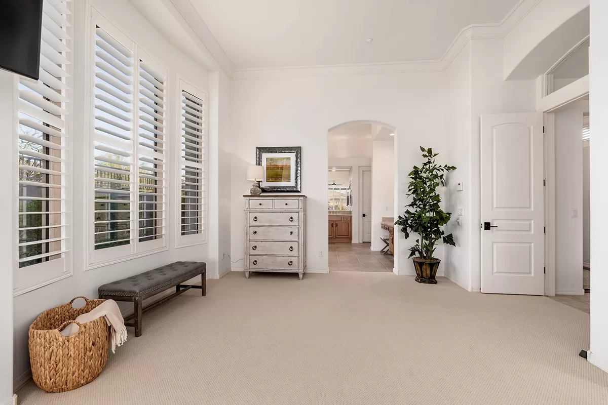 The thoughtfully designed split floor plan features expansive living spaces, a neutral color palette, and oversized windows that flood the home with natural light while capturing the vivid outdoor scenery. Recent updates enhance the home’s charm, including fresh interior paint (2023), new hardwood flooring in key areas (2022–2024), updated lighting fixtures, and plantation shutters throughout. The chef’s kitchen boasts a Sub-Zero refrigerator, Bosch dishwasher, and upgraded fixtures, complemented by a cozy great room with a newly added fireplace and surround (2022). The powder bath has been tastefully upgraded (2023), while hardware throughout the home has been modernized for a seamless, updated aesthetic.