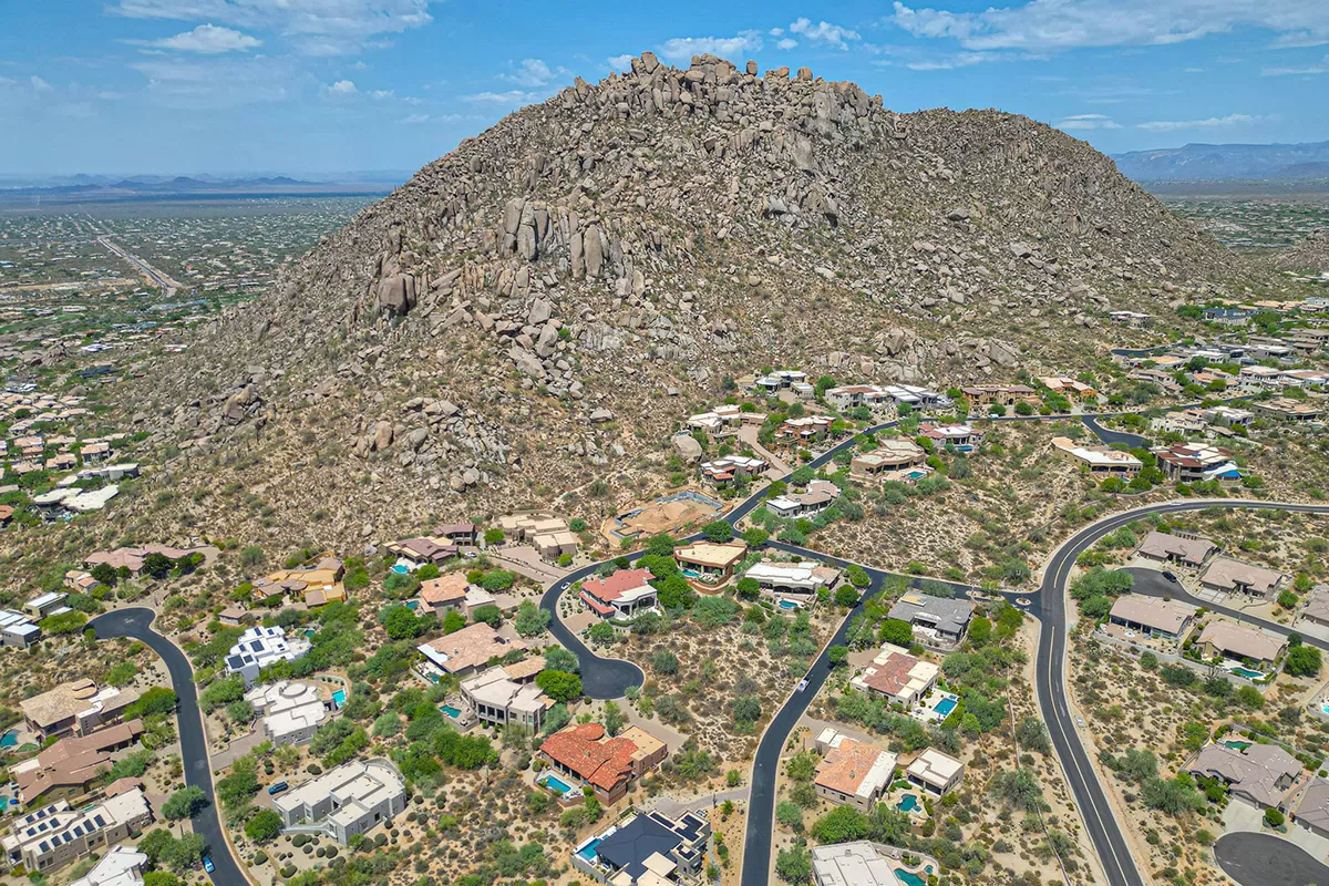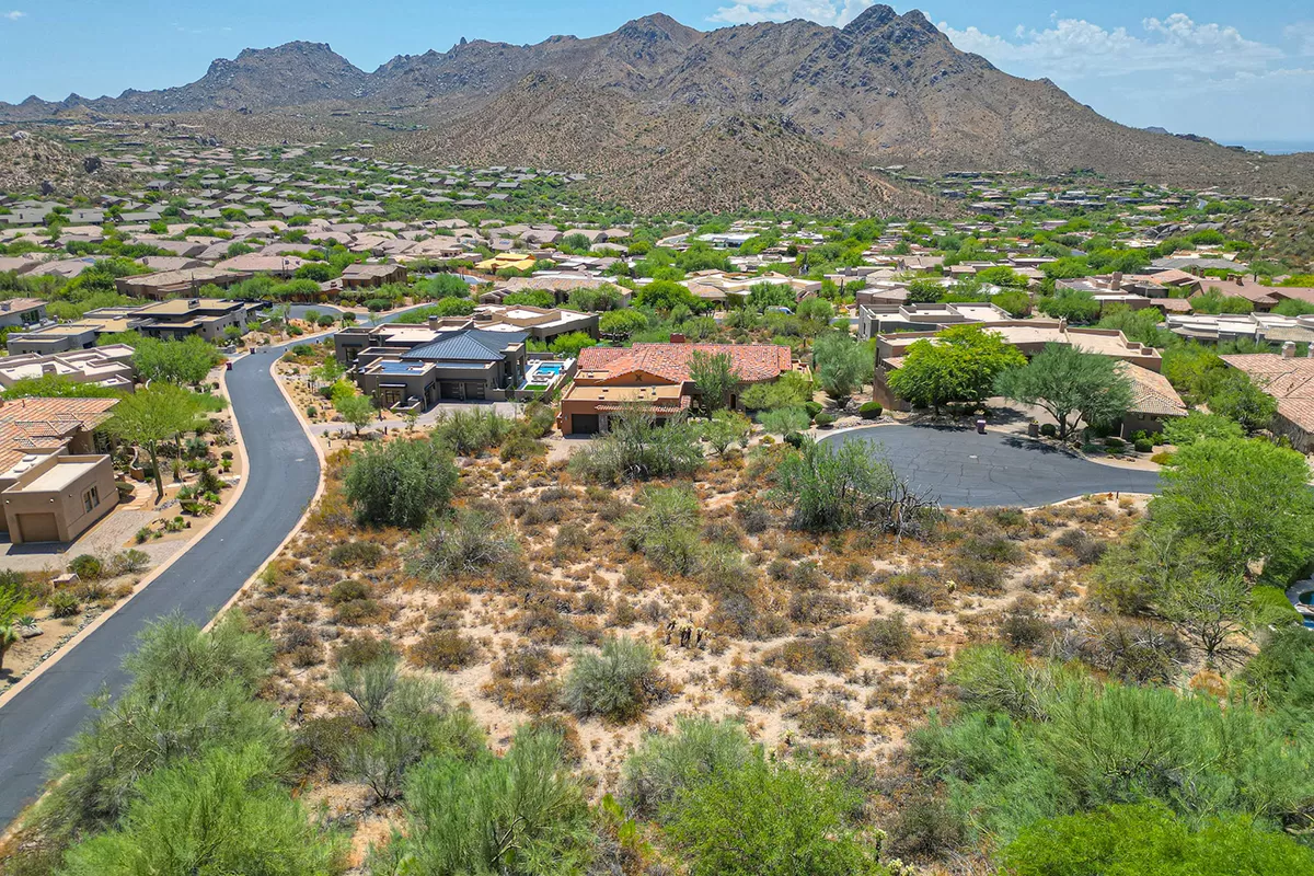 Stunning scenery awaits from this custom homesite located in the guard-gated community of Troon Mountain Estates in well-known Troon Village. Delight in mesmerizing sunrise views and endless panoramas of the majestic mountains! Enjoy the Southeast facing, unobstructed views of the McDowell Mountains! The .61 acre lot has utilities to the site and a well sized building envelope.