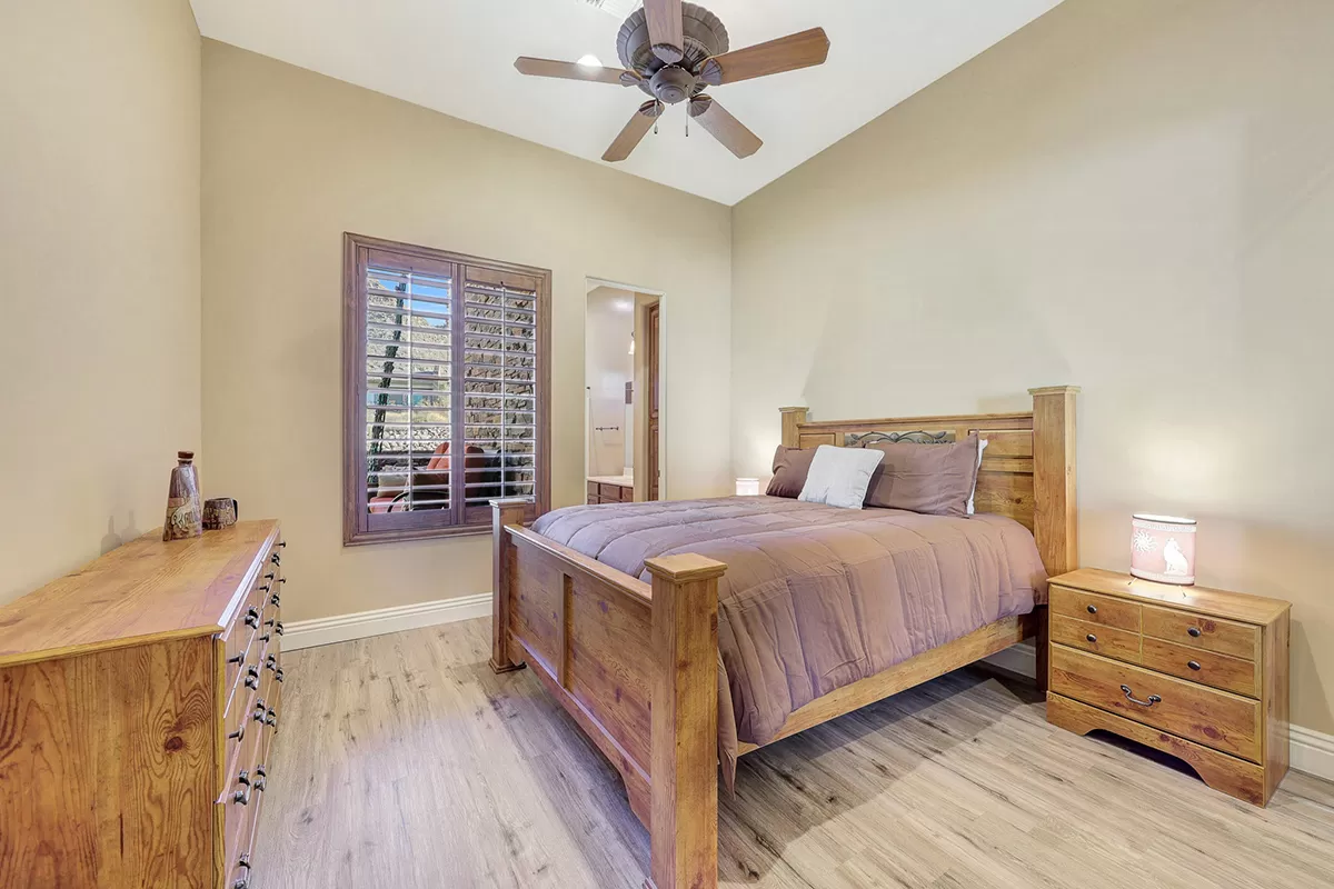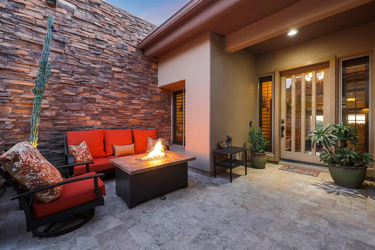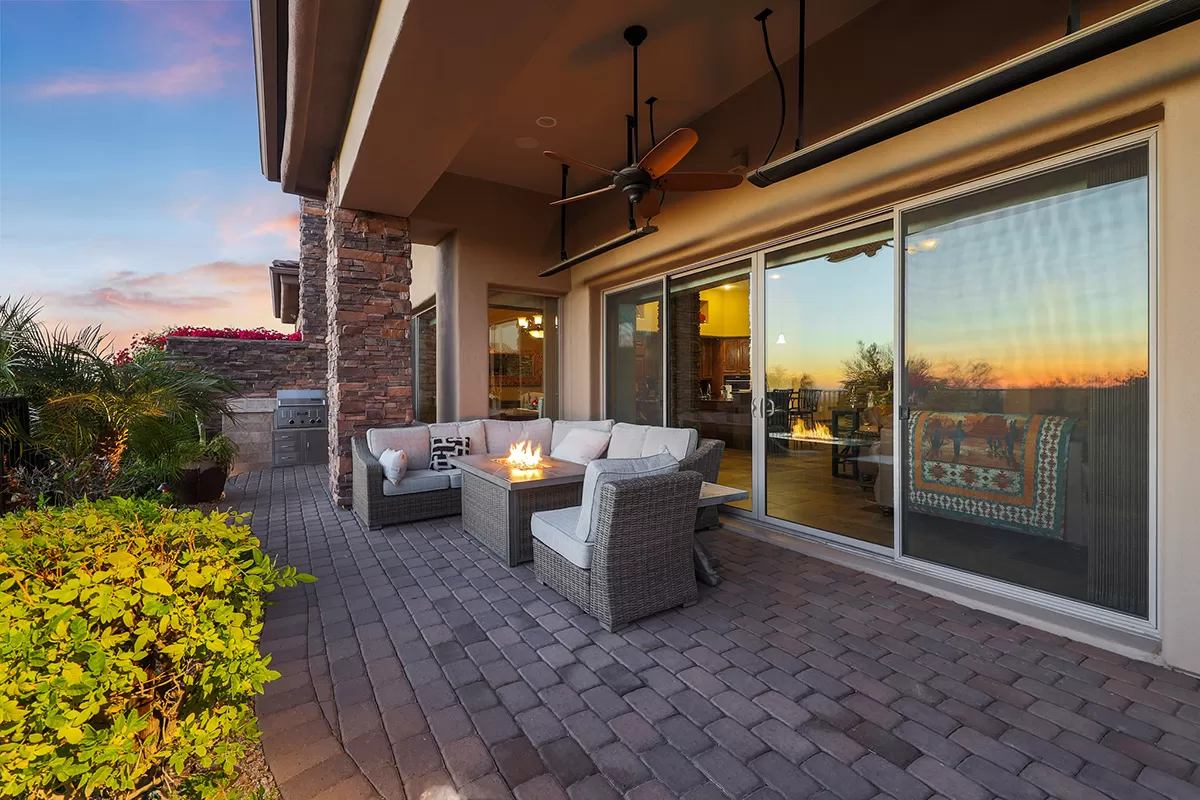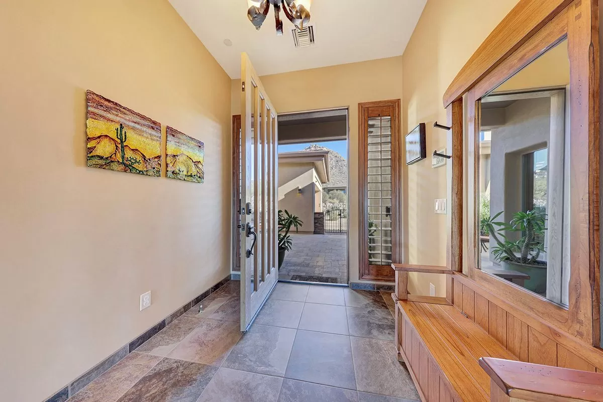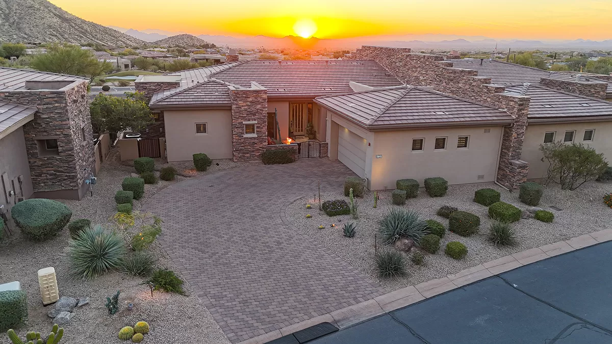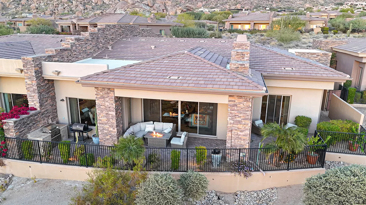 Residents of Tusayan enjoy a heated community pool and spa set amid the serene desert landscape, with views of iconic Pinnacle Peak. Additional highlights include a pavered front courtyard with a charming water feature, plantation shutters, central vacuum, built-in office cabinetry, and a two-car garage with epoxy flooring and storage.