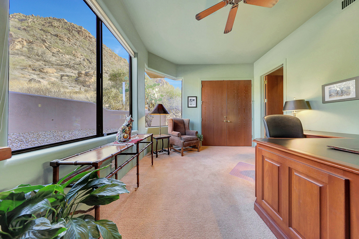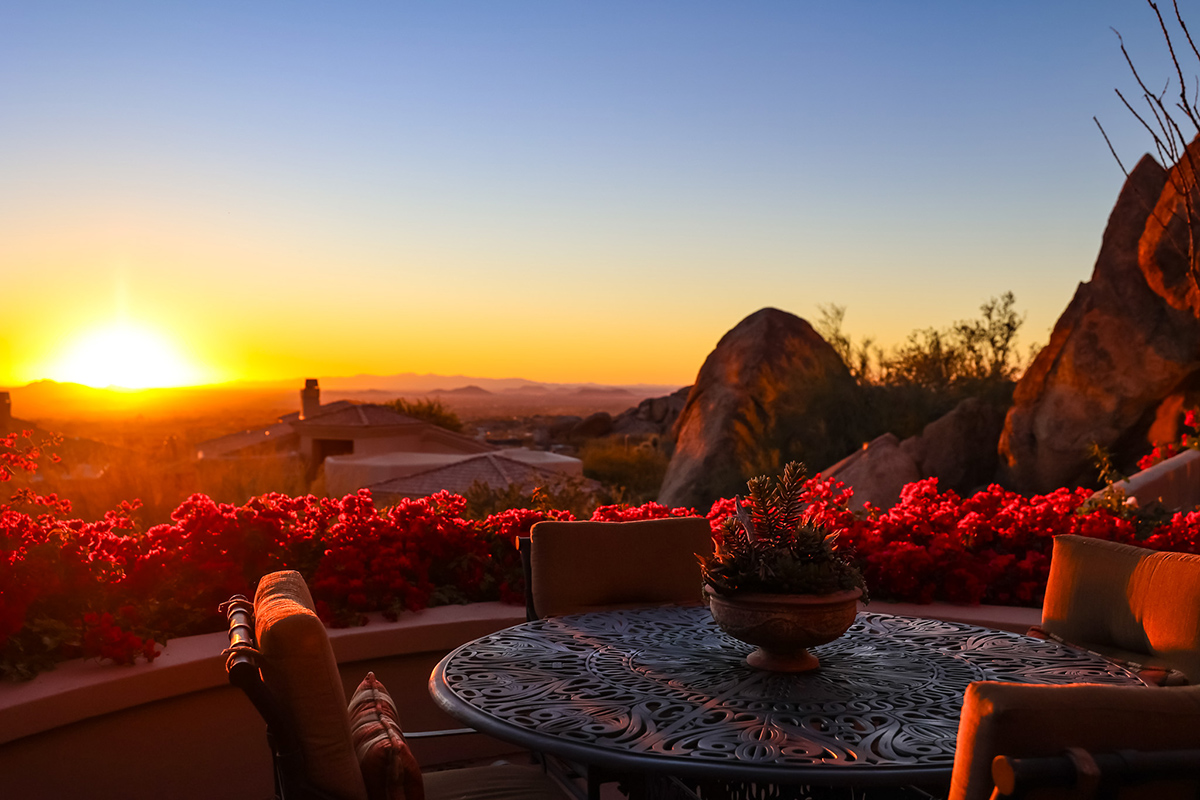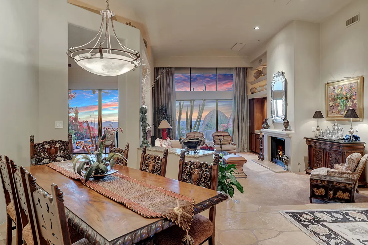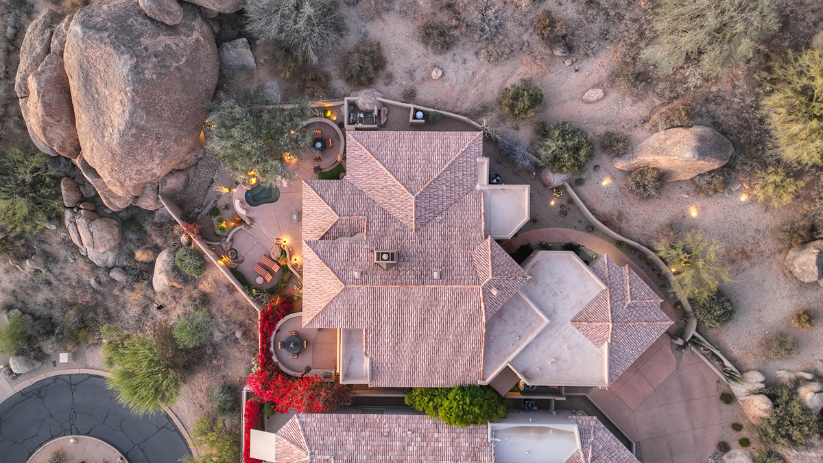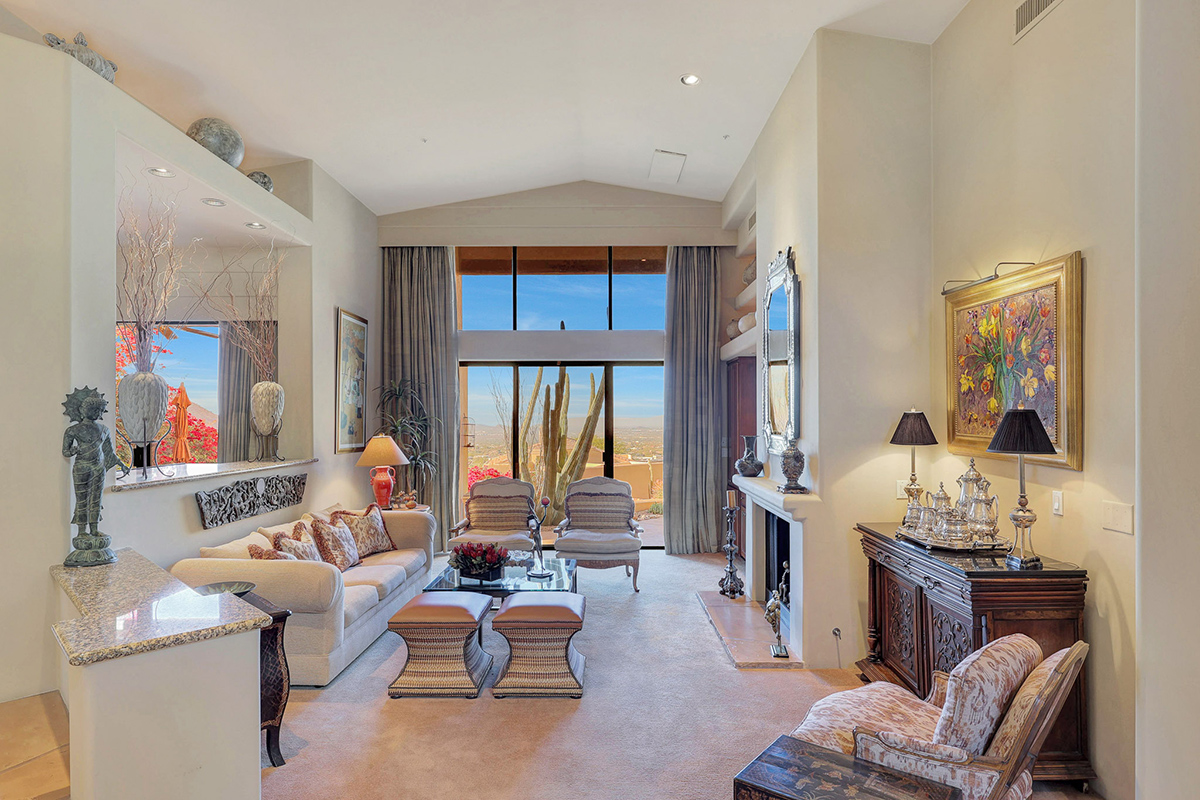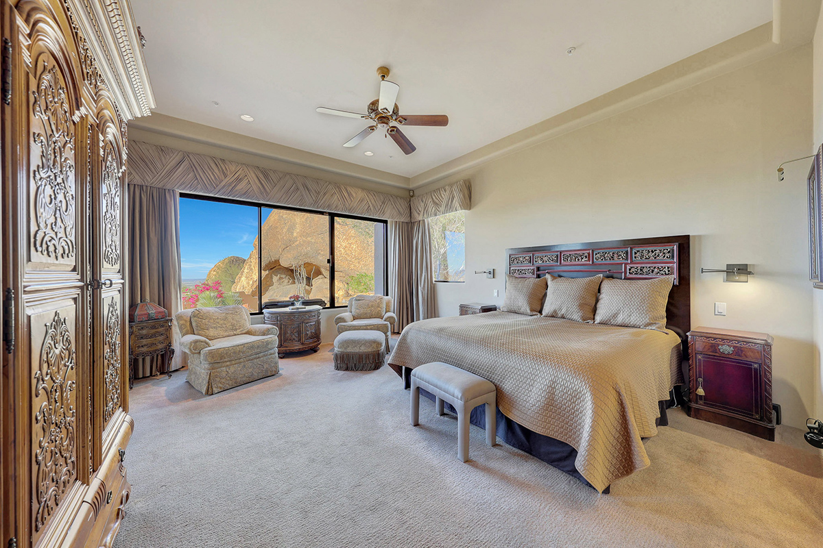 At the top of the hillside, experience unparalleled views and luxurious living in the gated community of Whispering Ridge at Troon Village. Situated on the south side of Troon Mountain, this exclusive homesite offers privacy and stunning mountain and city light views. This 2,943 sq. ft. home is perfectly positioned at the end of a cul-de-sac and near the community pool and spa. Nestled against a backdrop of dramatic boulder outcroppings and protected NAOS land, the property has some of the best views in the area.