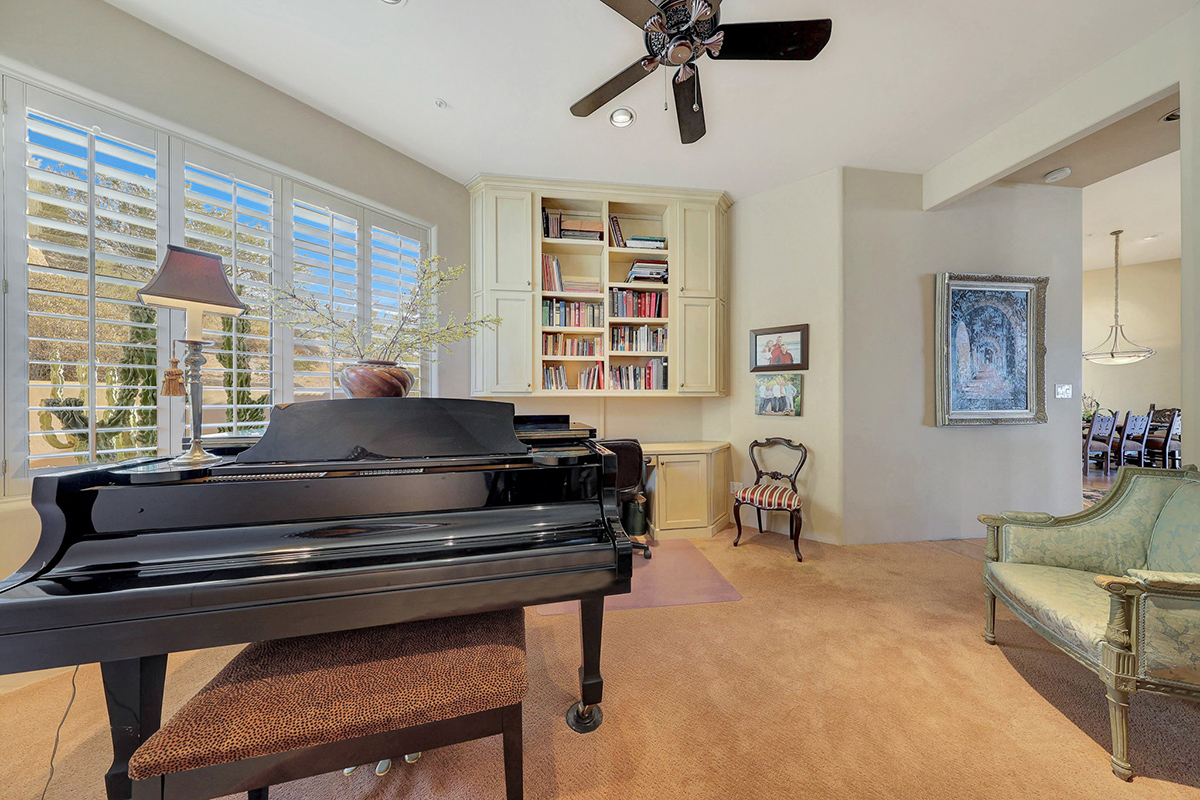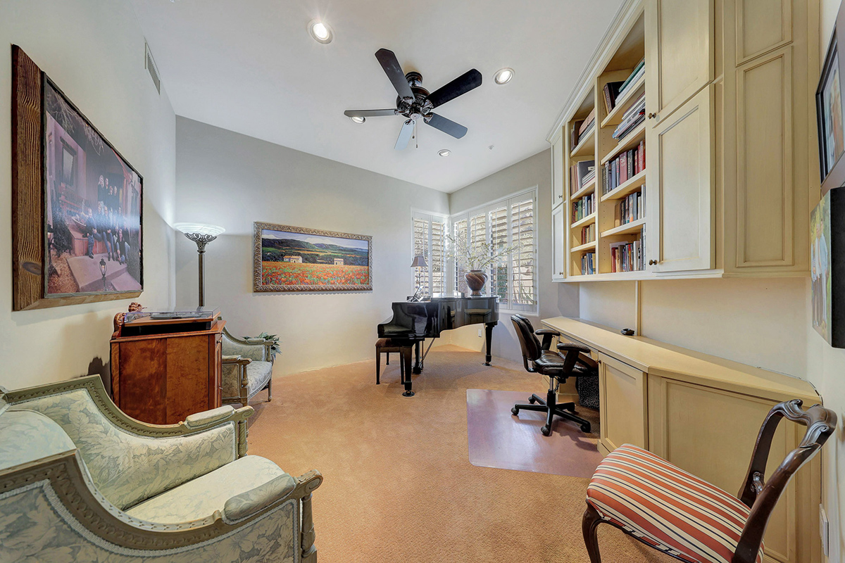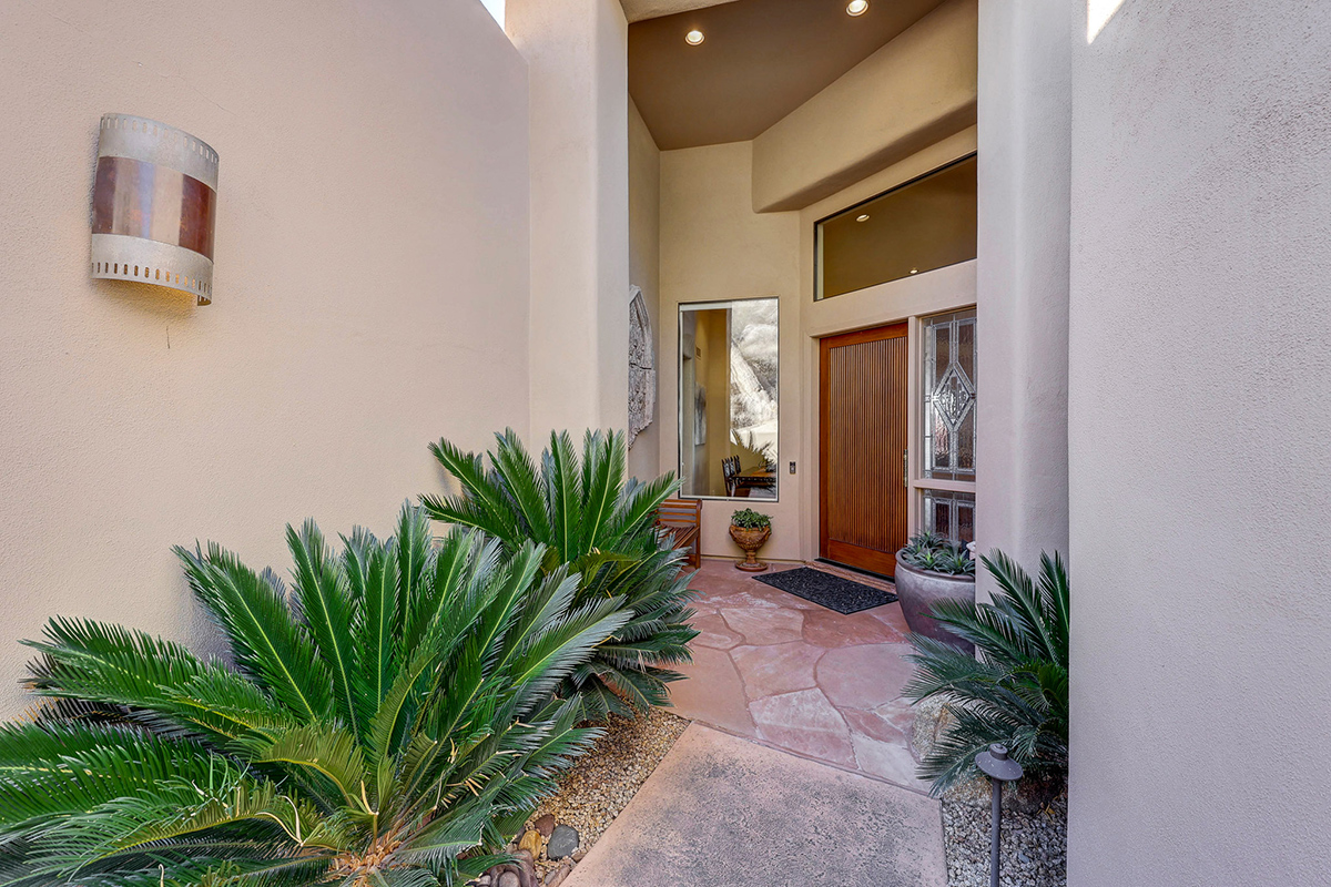 Recent updates enhance the home’s appeal, including two new Trane HVAC units, a 2022 cement tile roof, upgraded exterior paint, enhanced landscaping with lighting, flagstone flooring, new garage door opener, and plantation shutters. The home also features a large laundry room with a sink. This home seamlessly blends luxury, functionality, and a prime location in Troon Village, offering the ultimate in desert living.